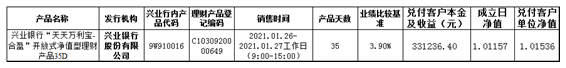 代销兴业银行“天天万利宝-合盈”开放式净值型理财产品35D到期公告(2021.3.04)