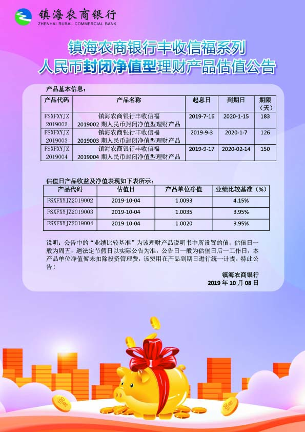 理财产品估值公告(20191008)