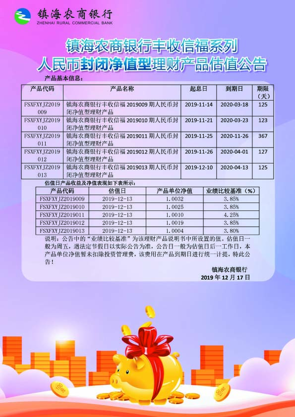 理财产品估值公告(20191217)