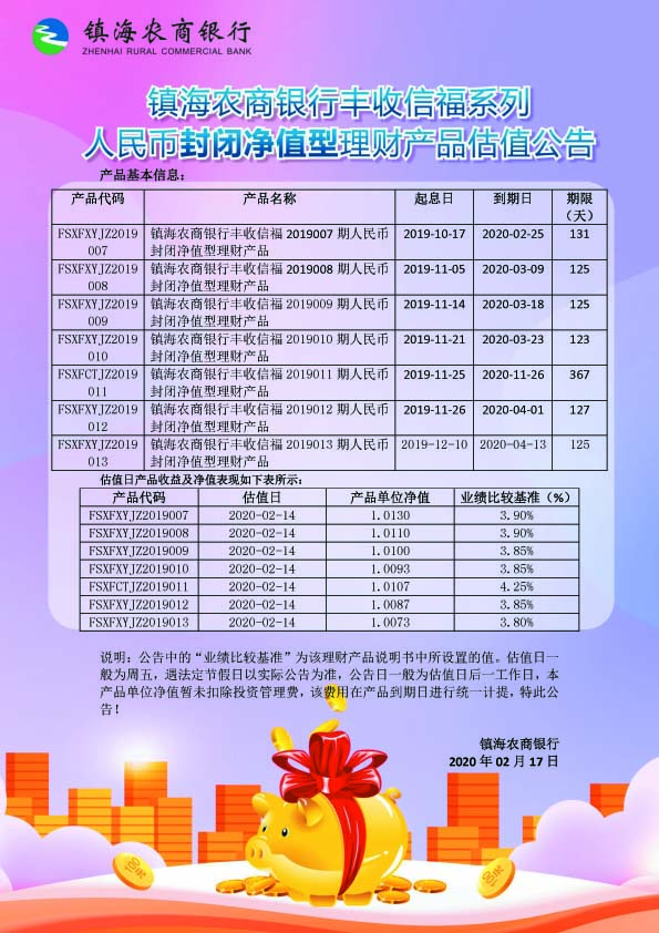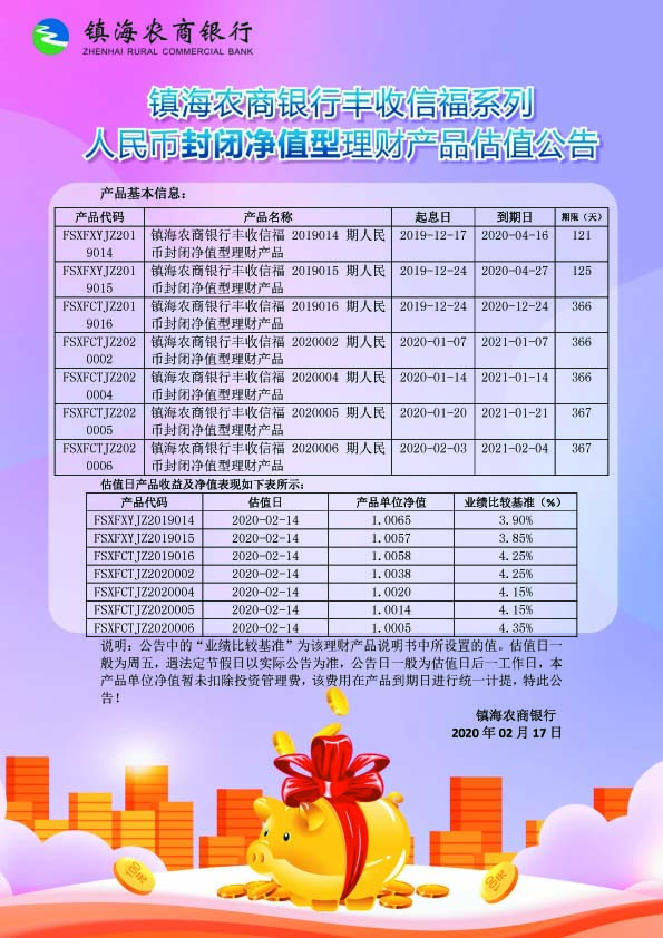 理财产品估值公告(20200217)