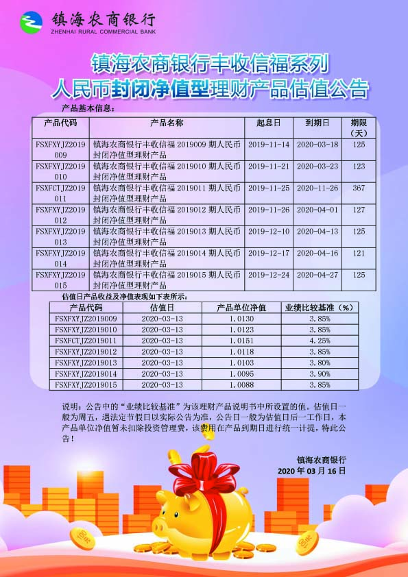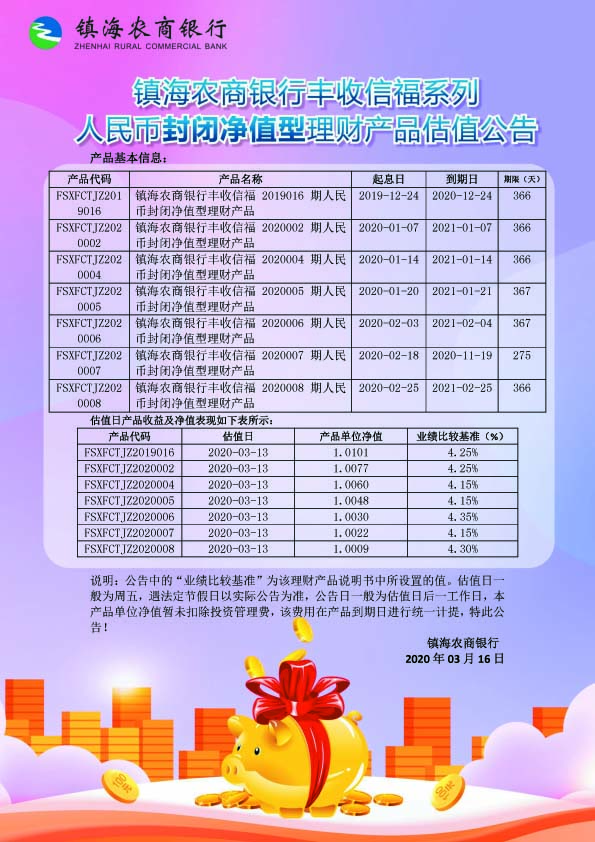 理财产品估值公告(20200316)
