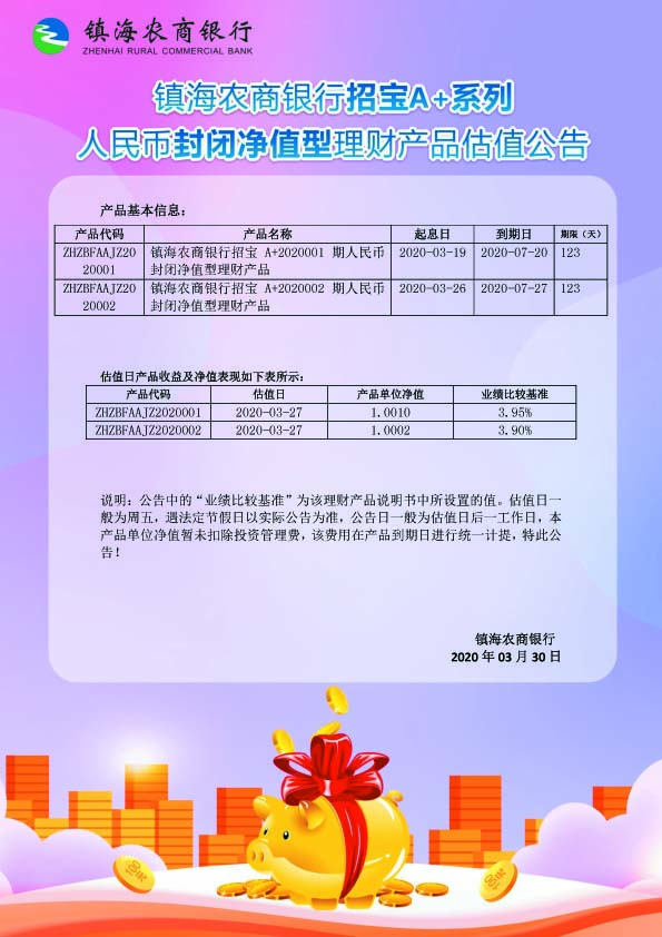 理财产品估值公告(20200330)