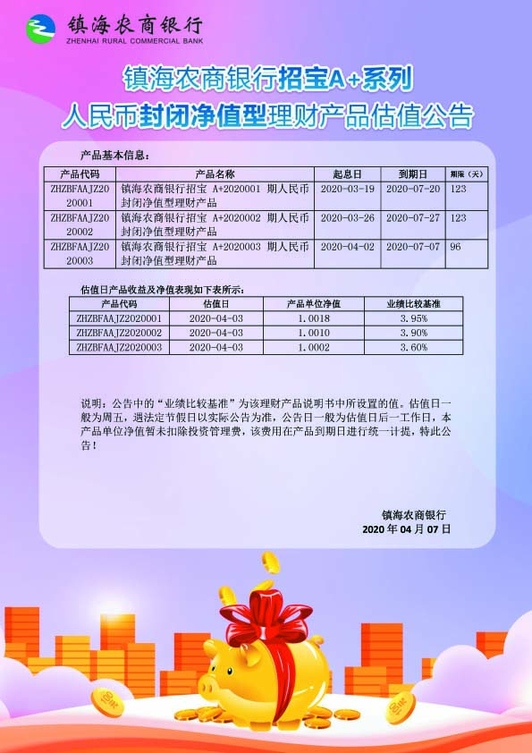 理财产品估值公告(20200407)