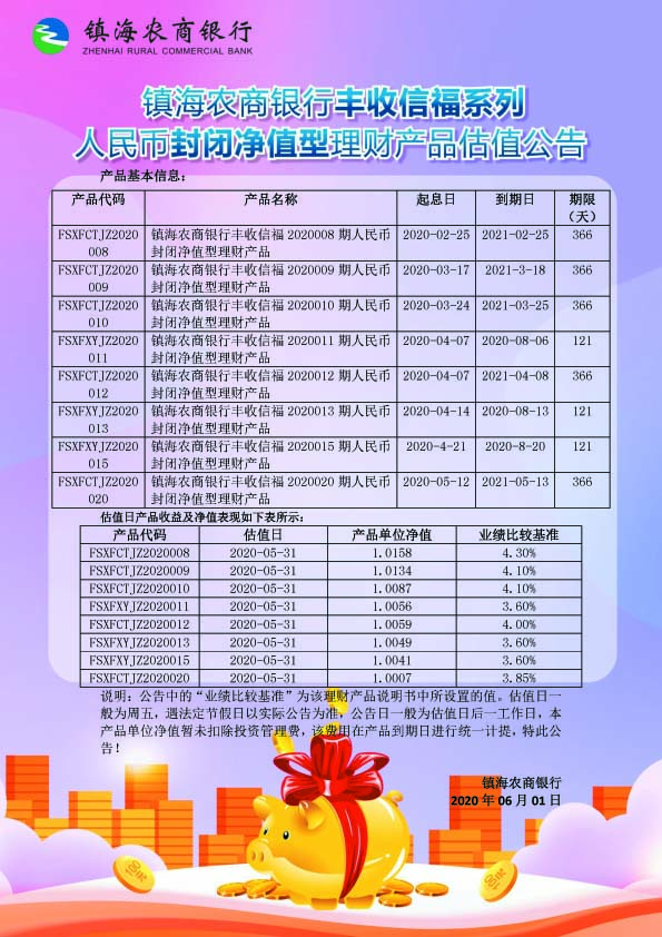 理财产品估值公告(20200531)