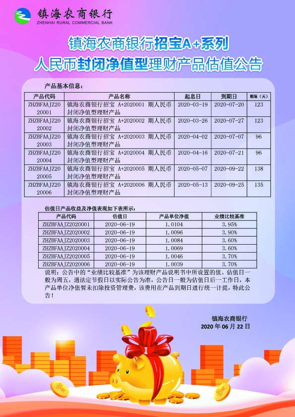 理财产品估值公告(20200622)