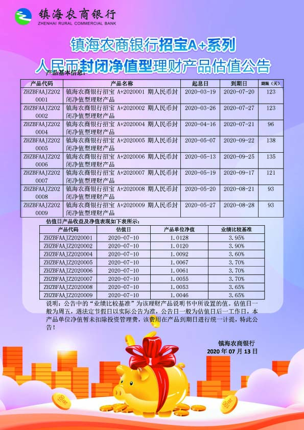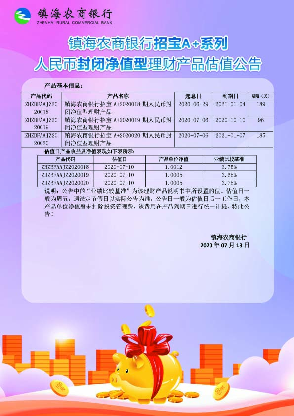 理财产品估值公告(20200713)