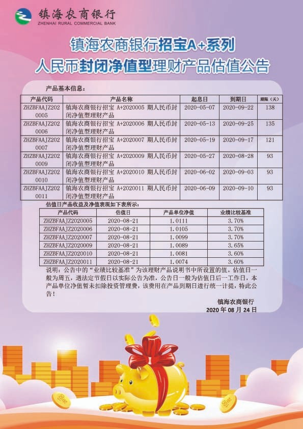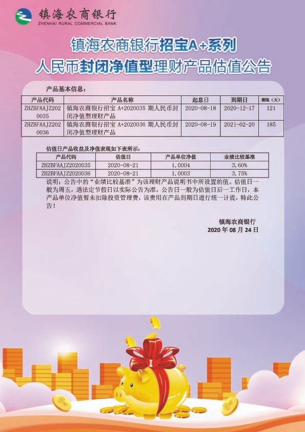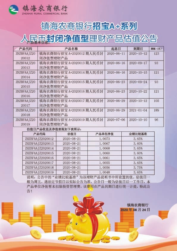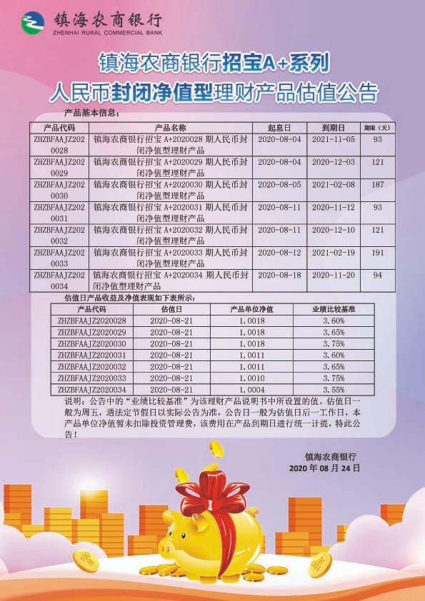 理财产品估值公告(20200824)