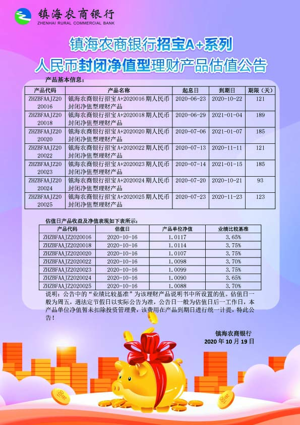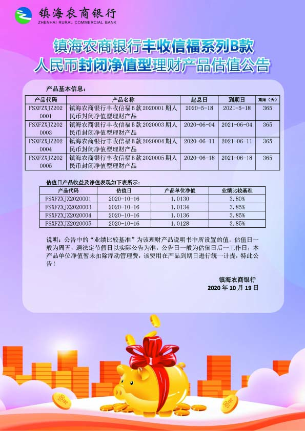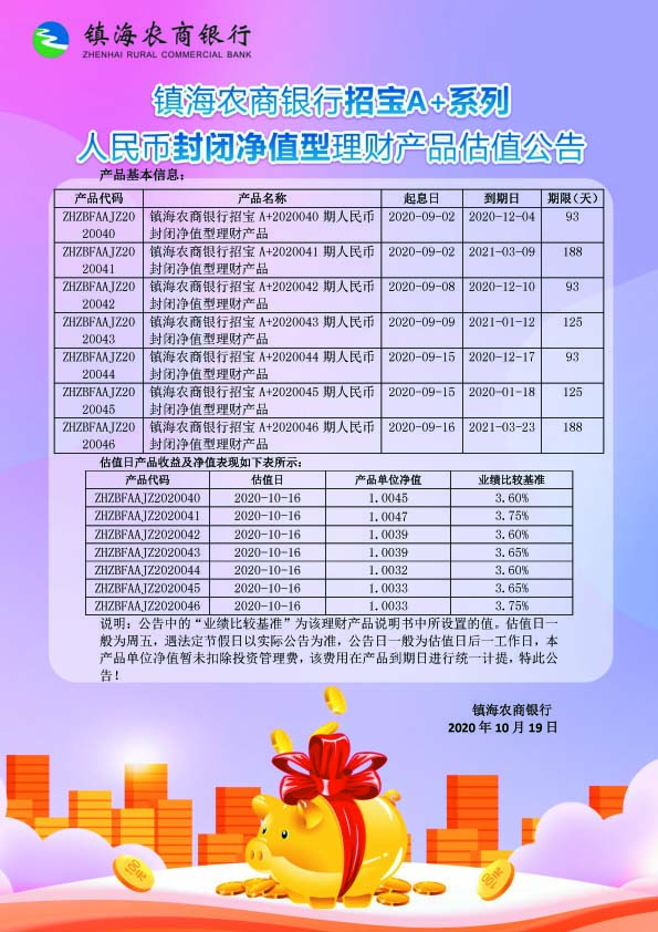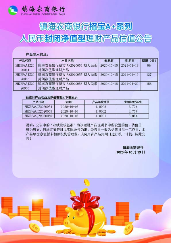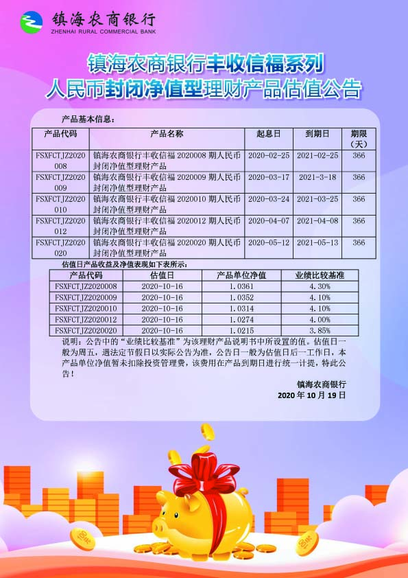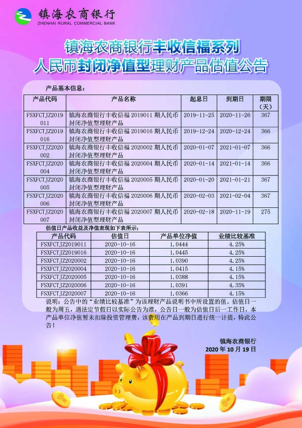 理财产品估值公告(20201019)