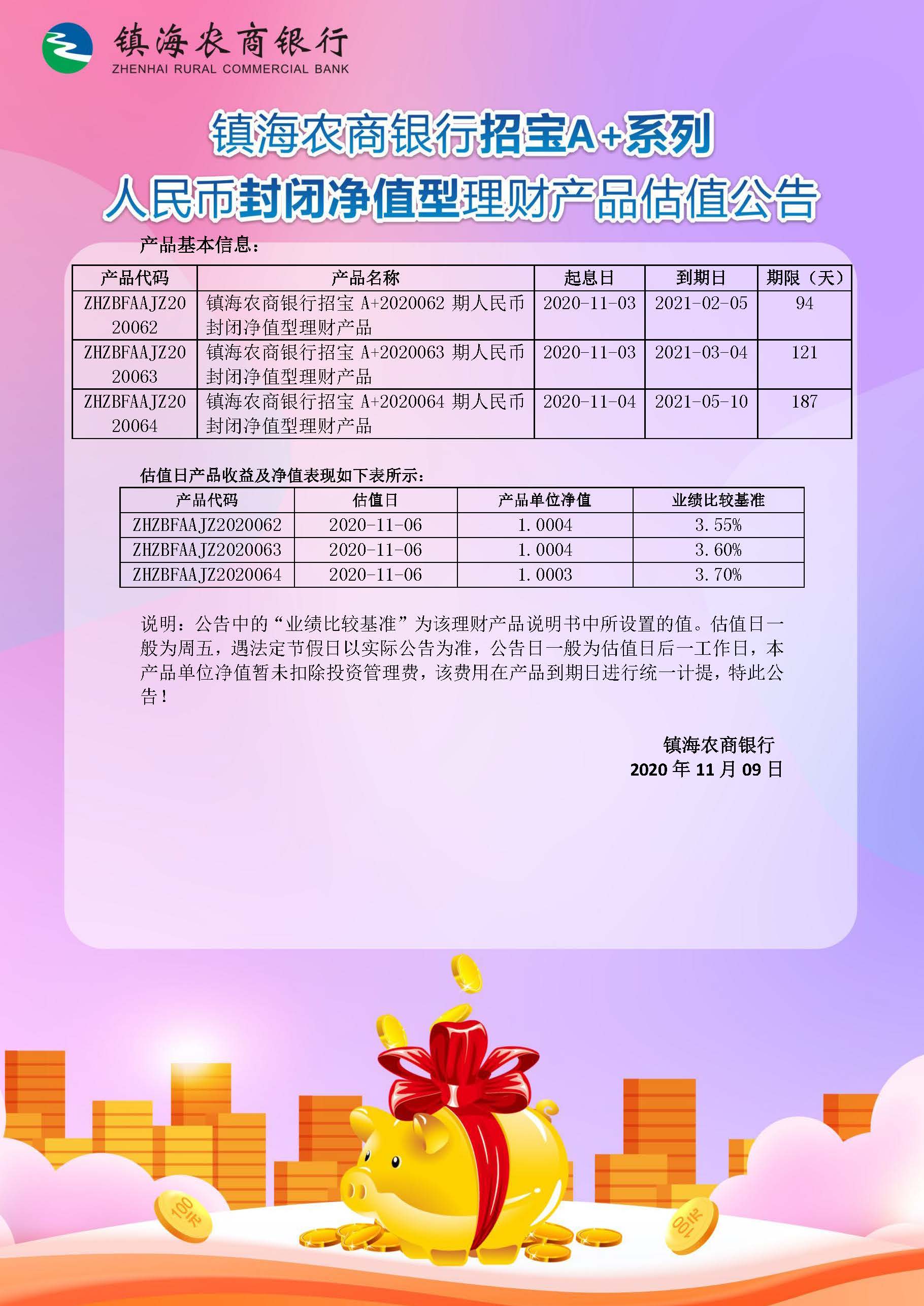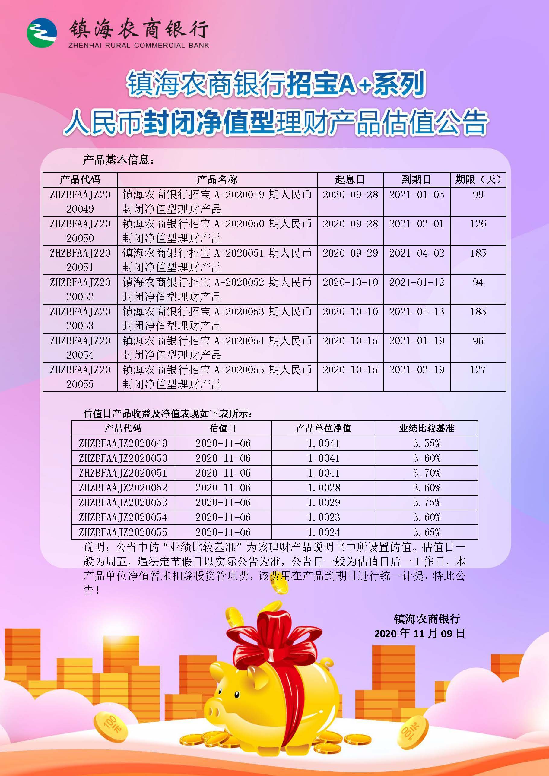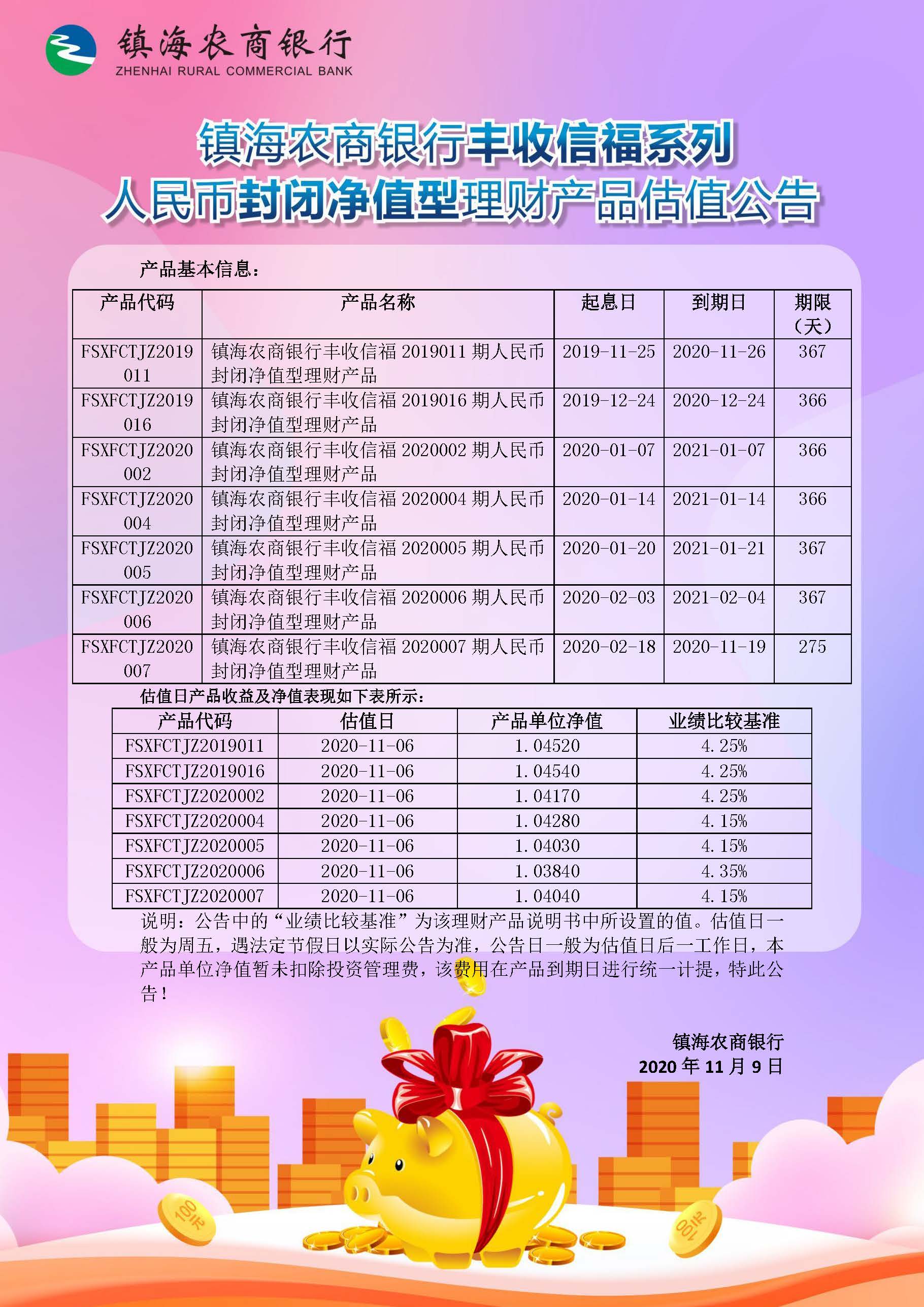 理财产品估值公告(20201109)