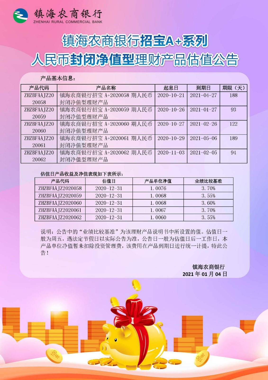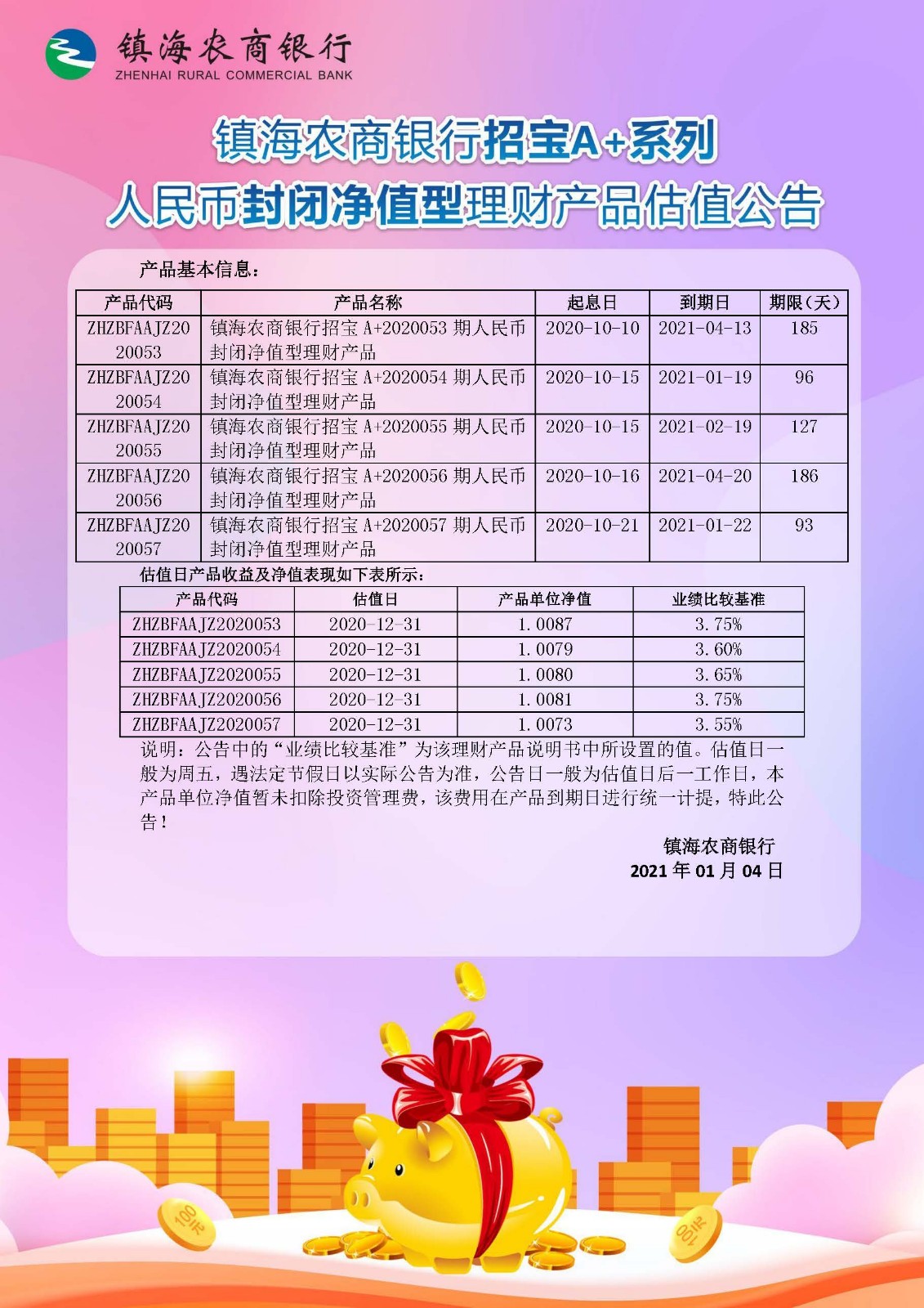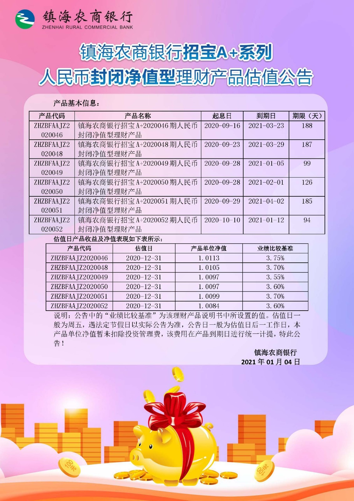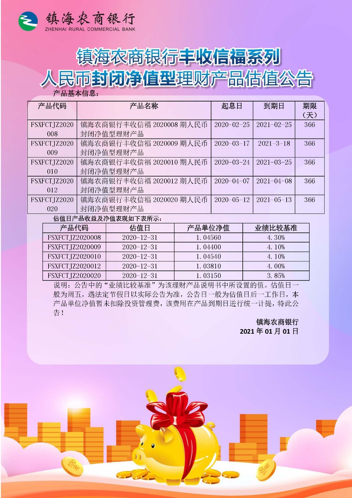 理财产品估值公告(20210101)