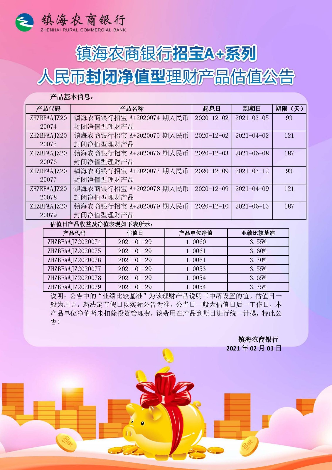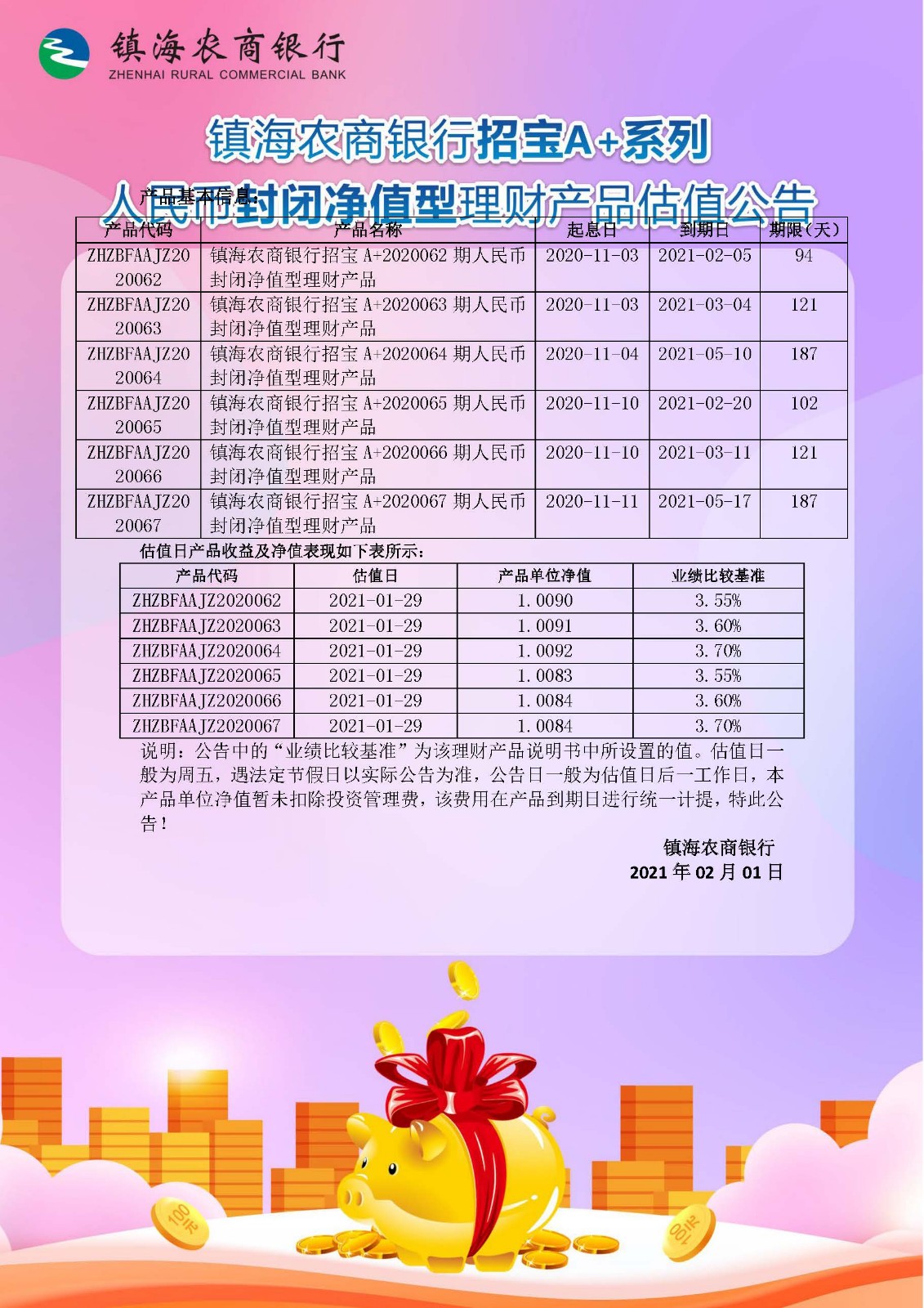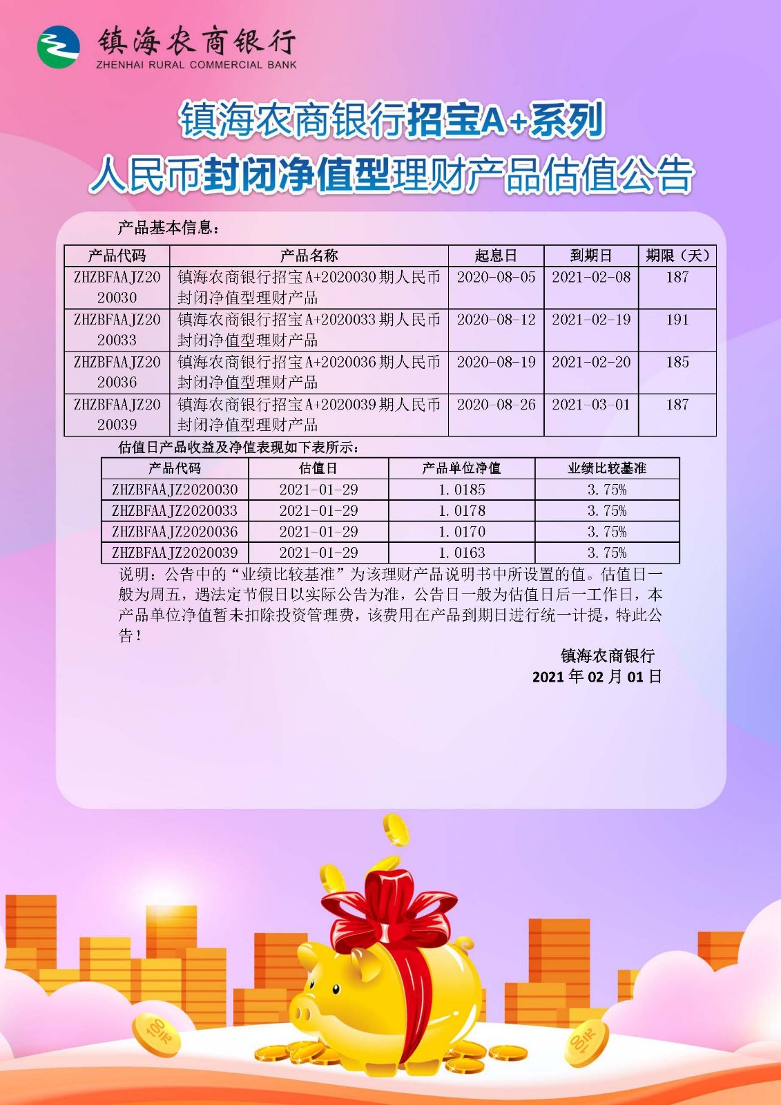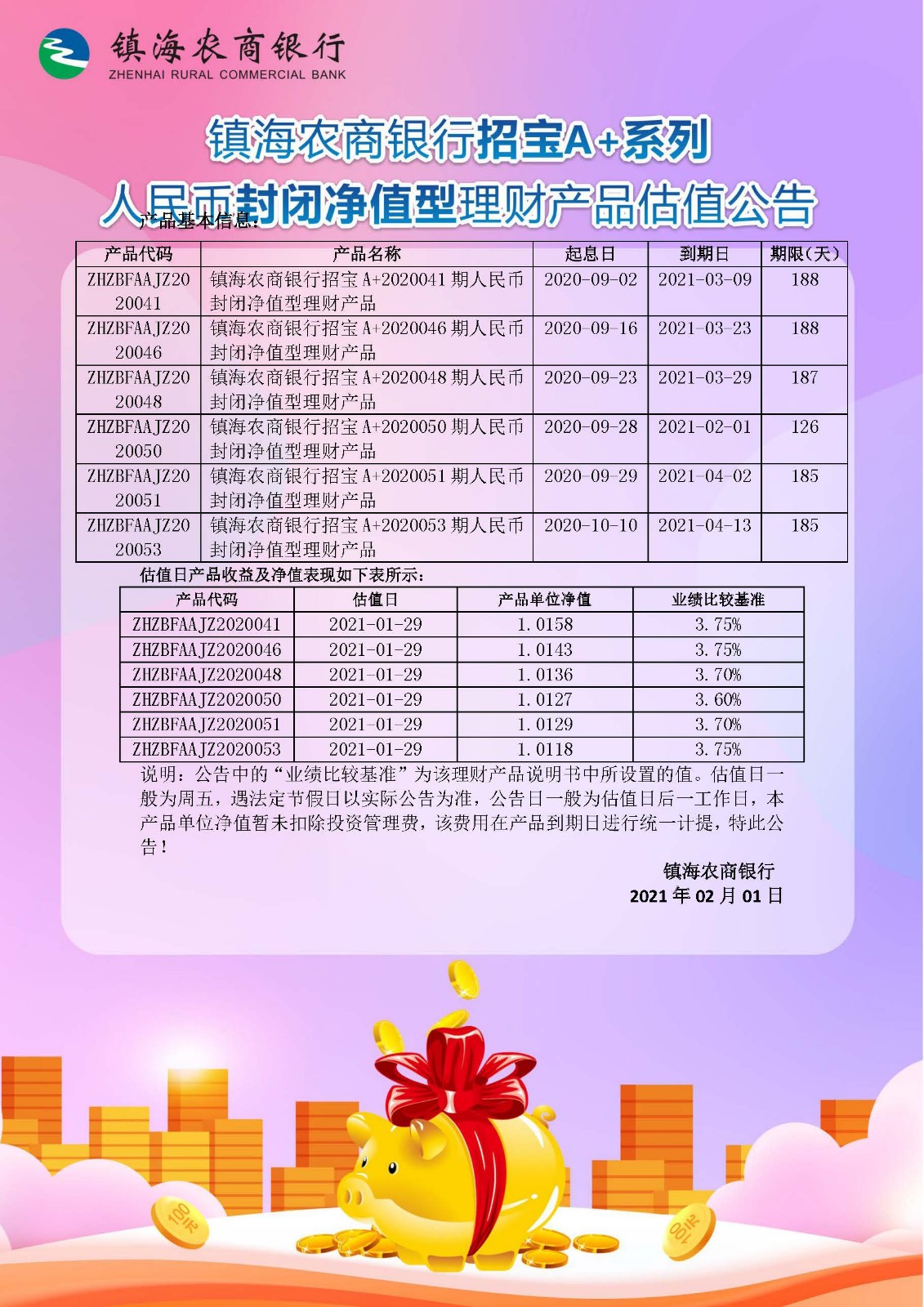 理财产品估值公告(20210131)