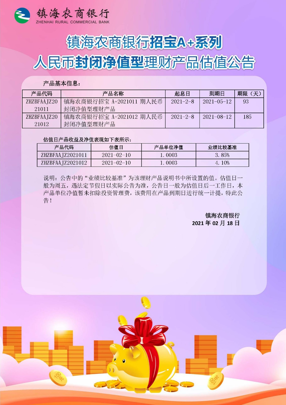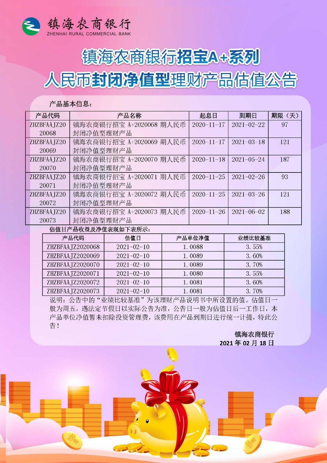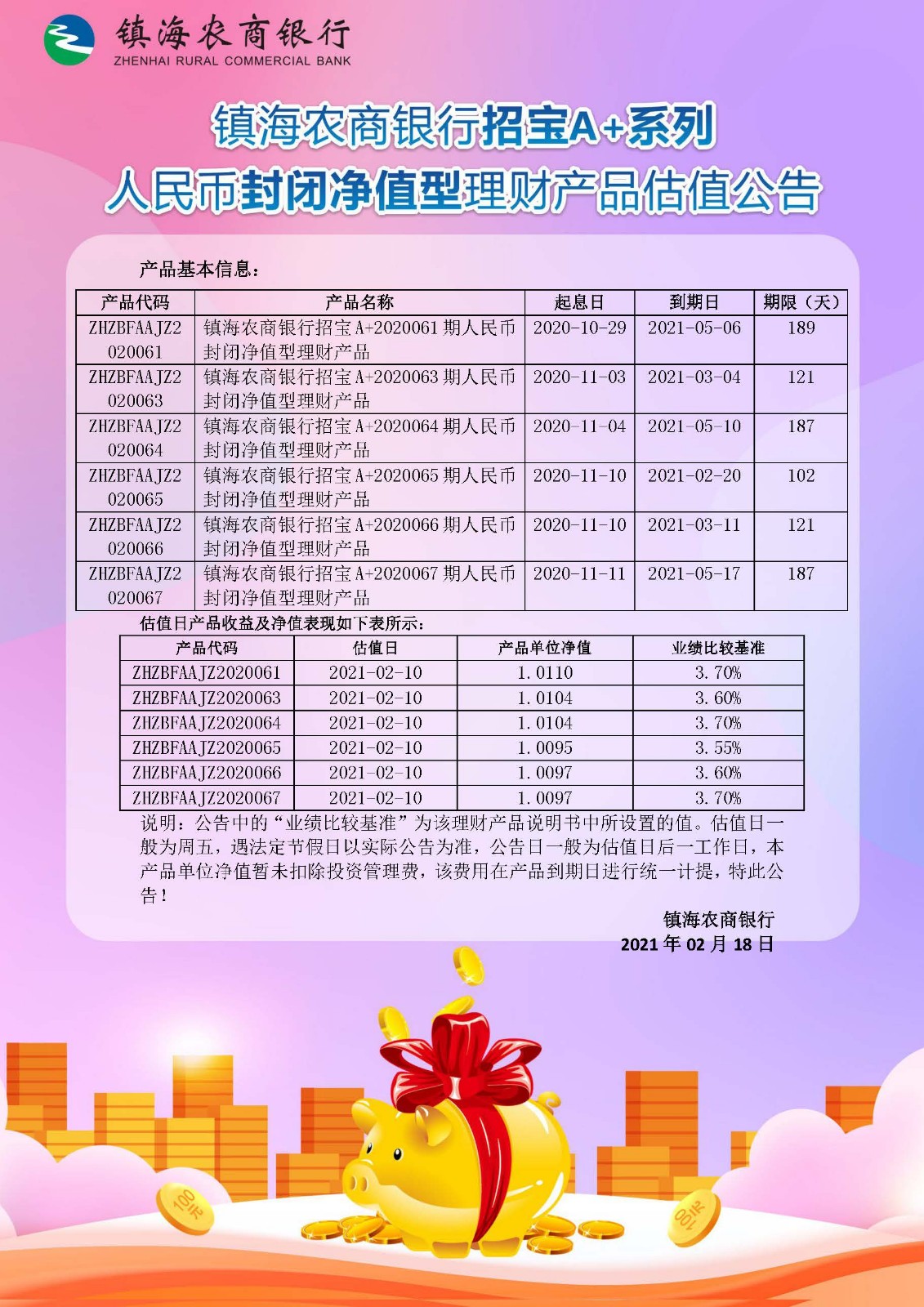 理财产品估值公告(20210218)