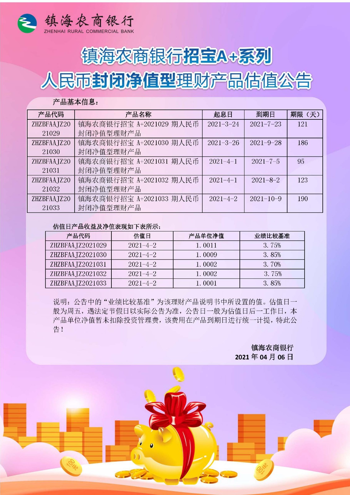理财产品估值公告(20210406)