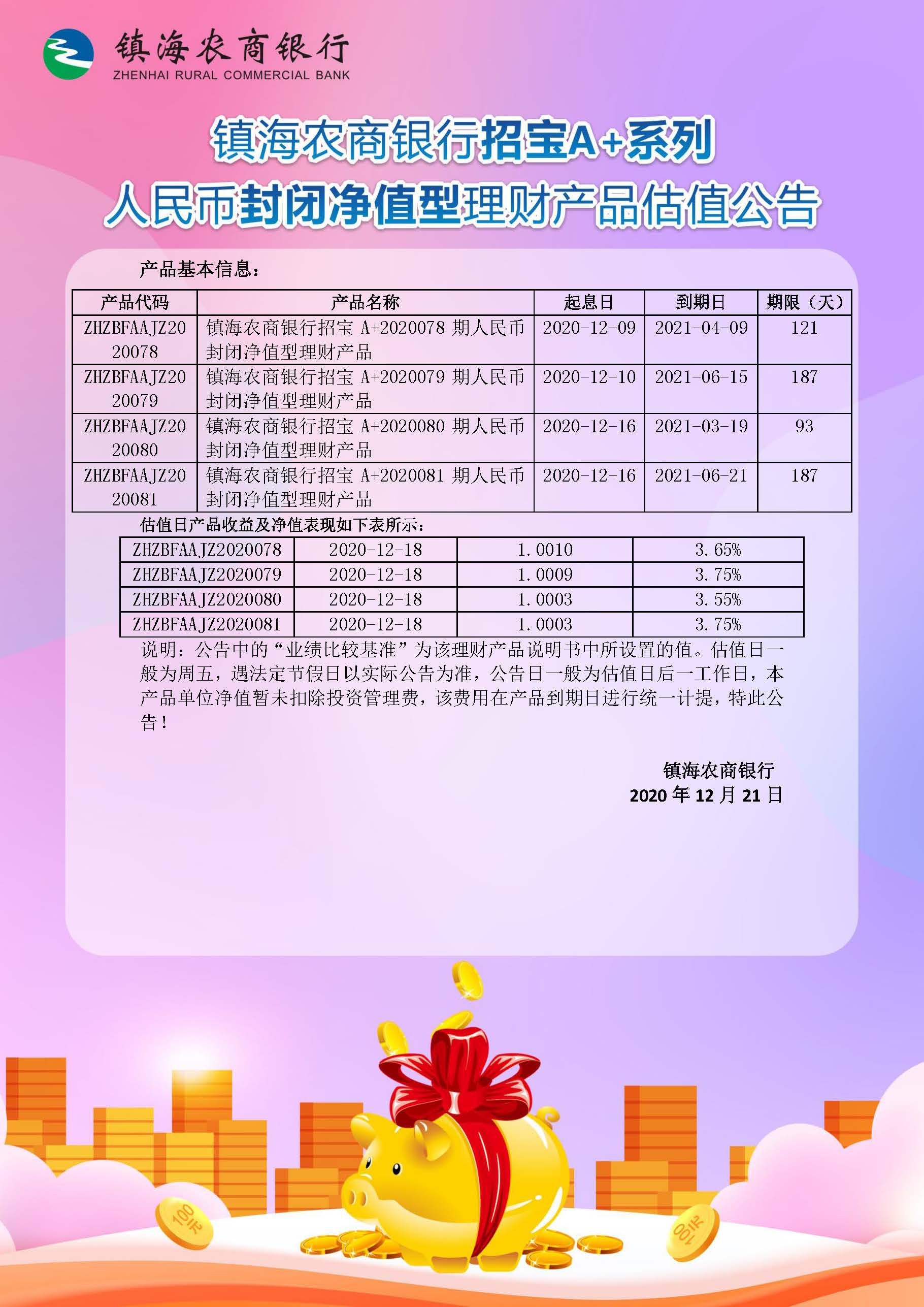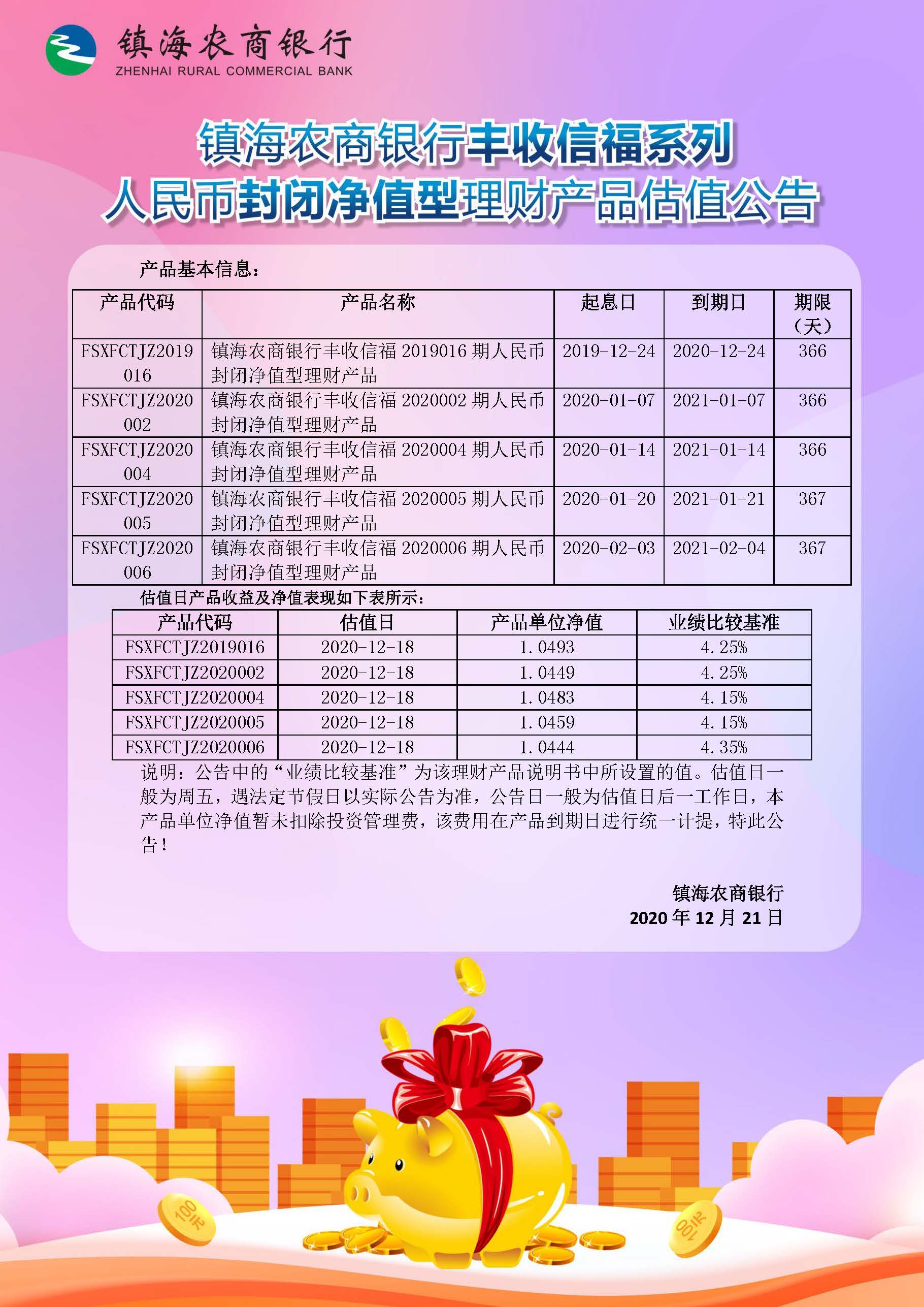 理财产品估值公告(20201221)
