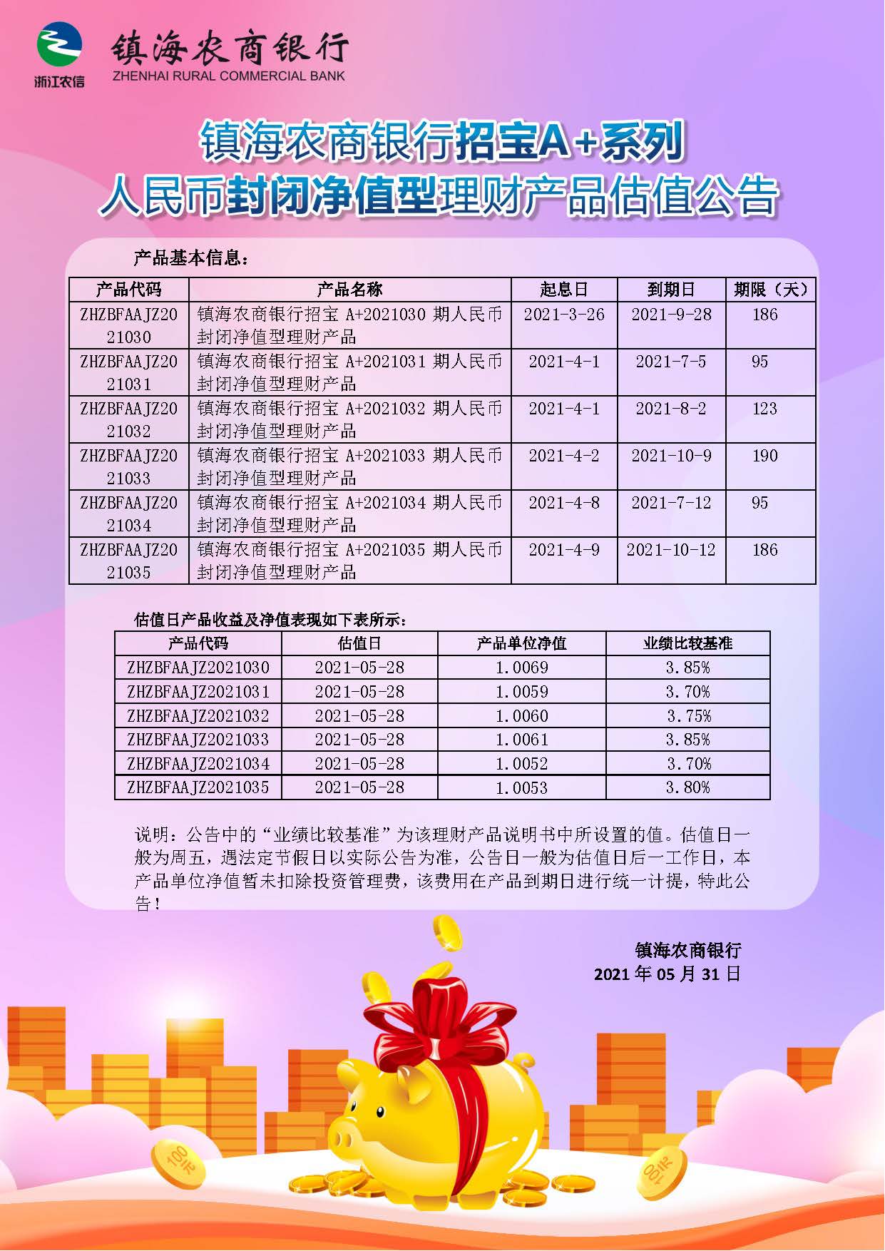 理财产品估值公告(20210531)