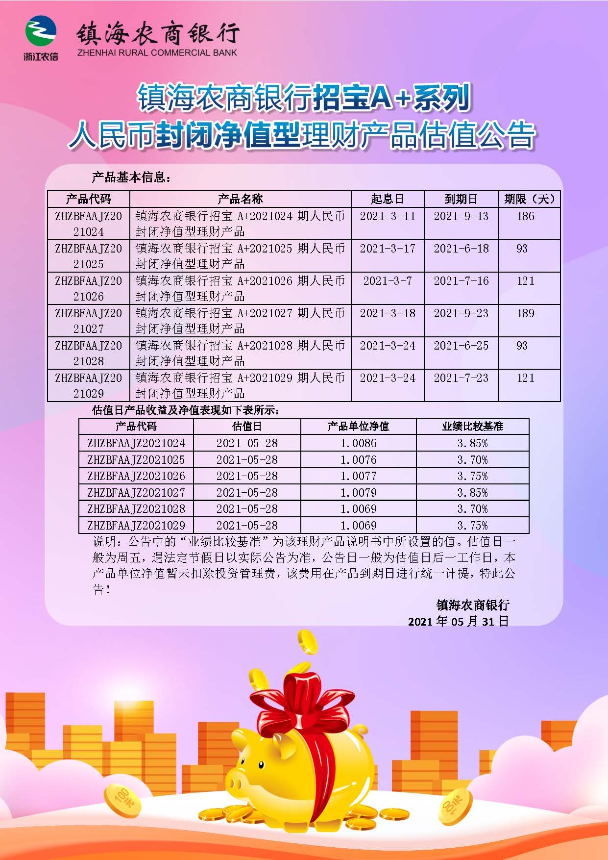 理财产品估值公告(20210525)
