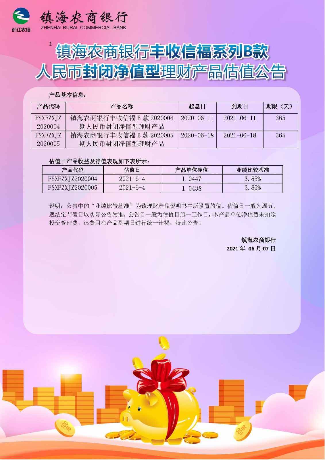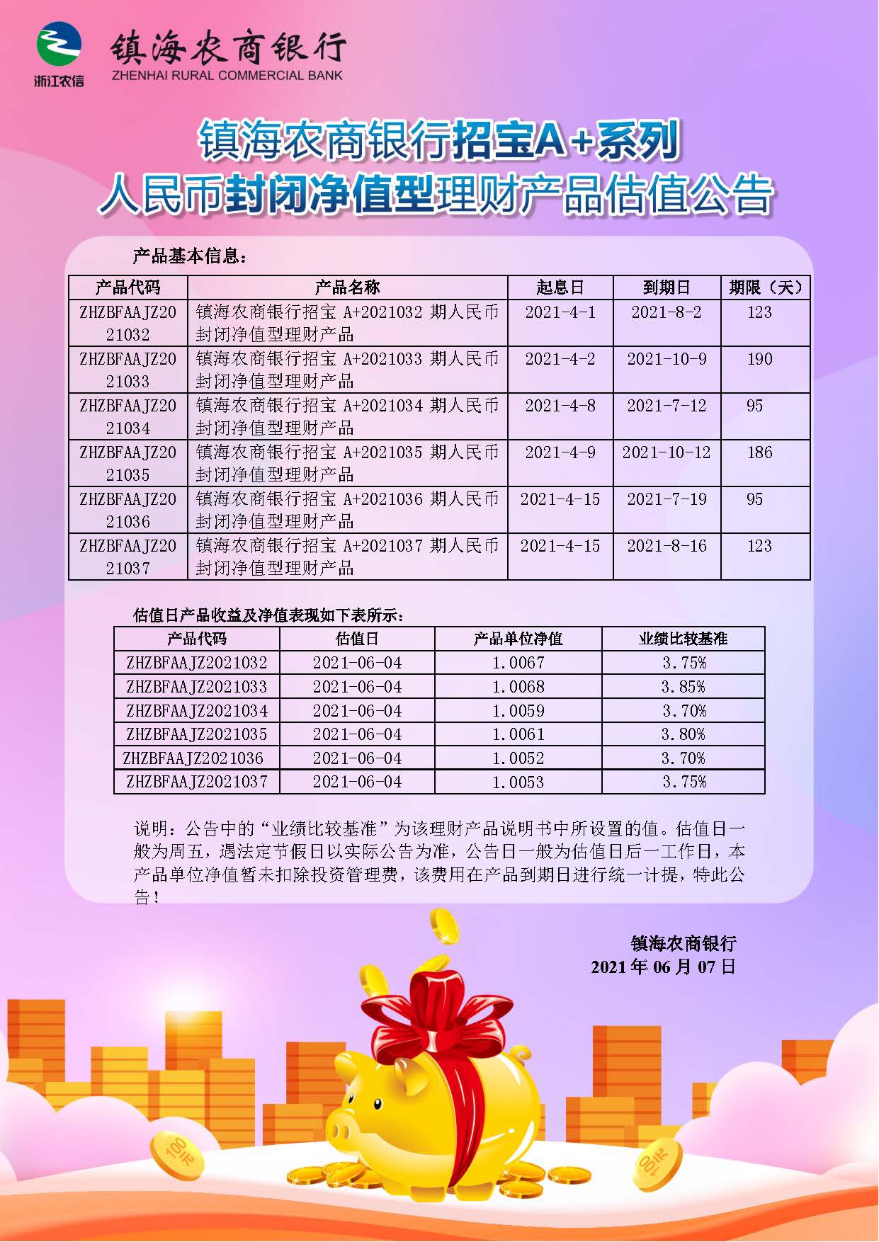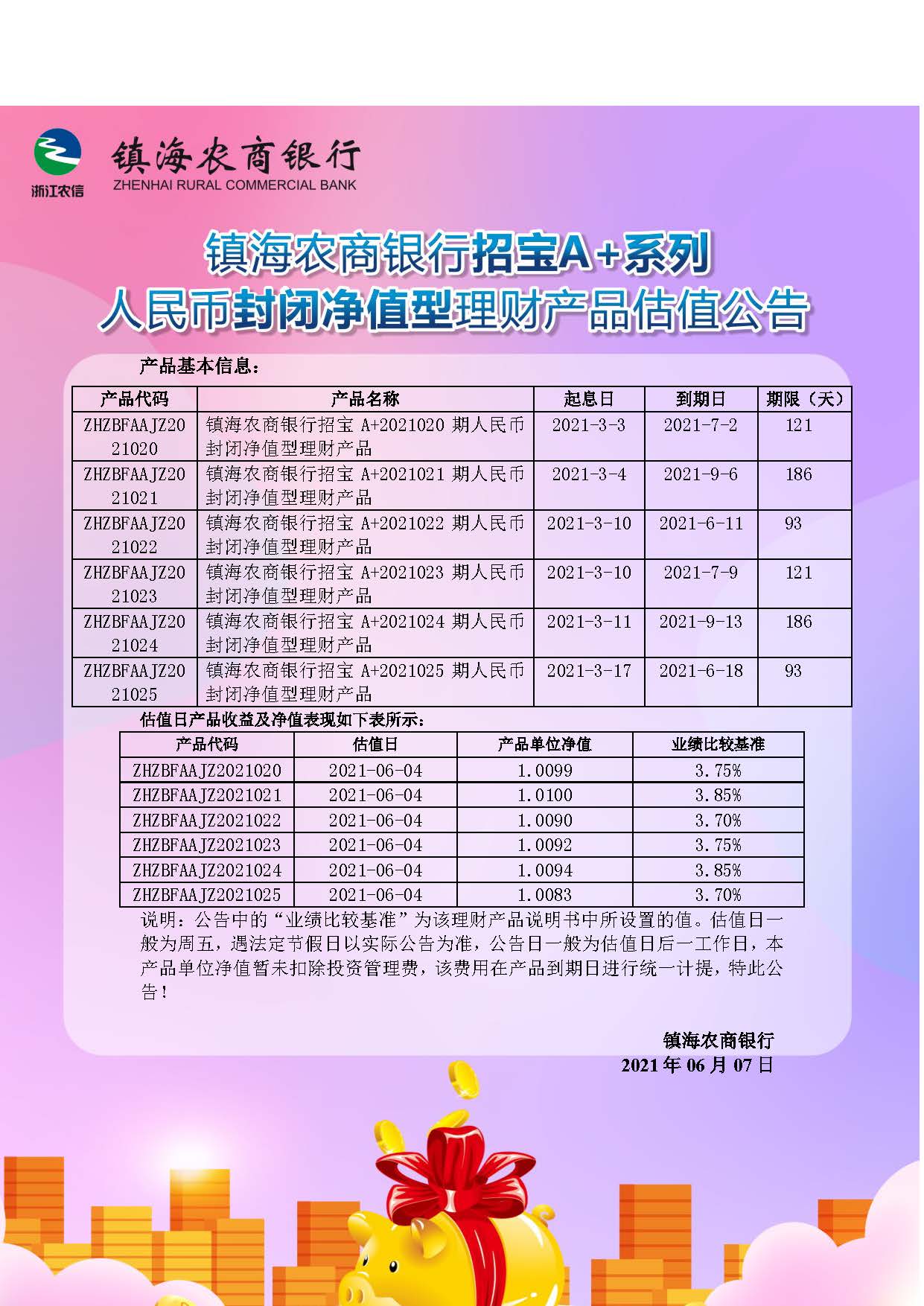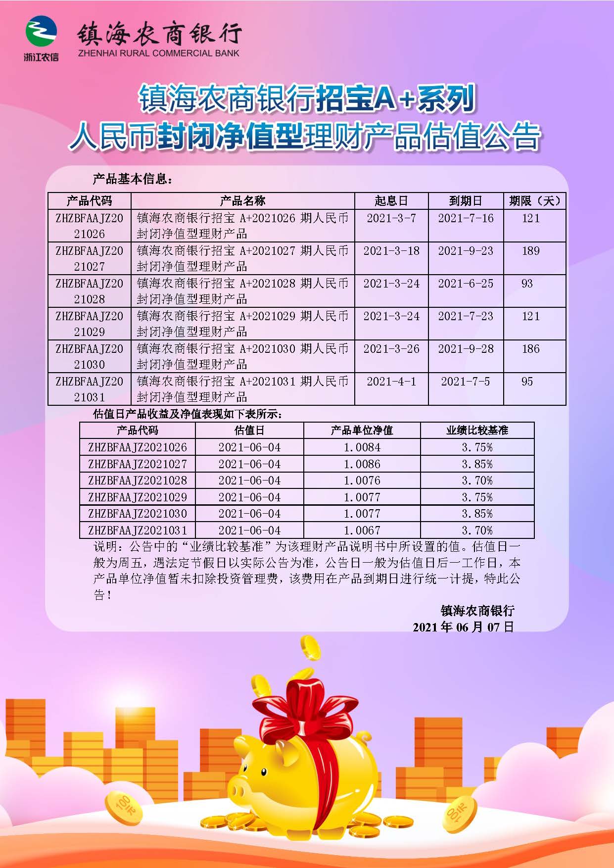 理财产品估值公告(20210607)