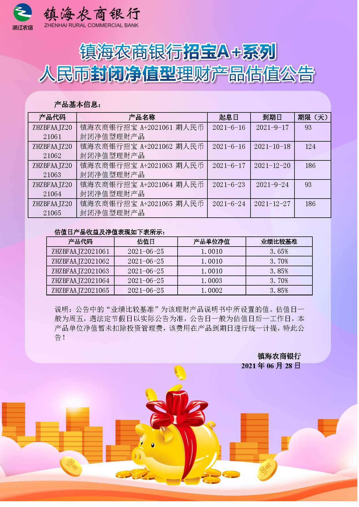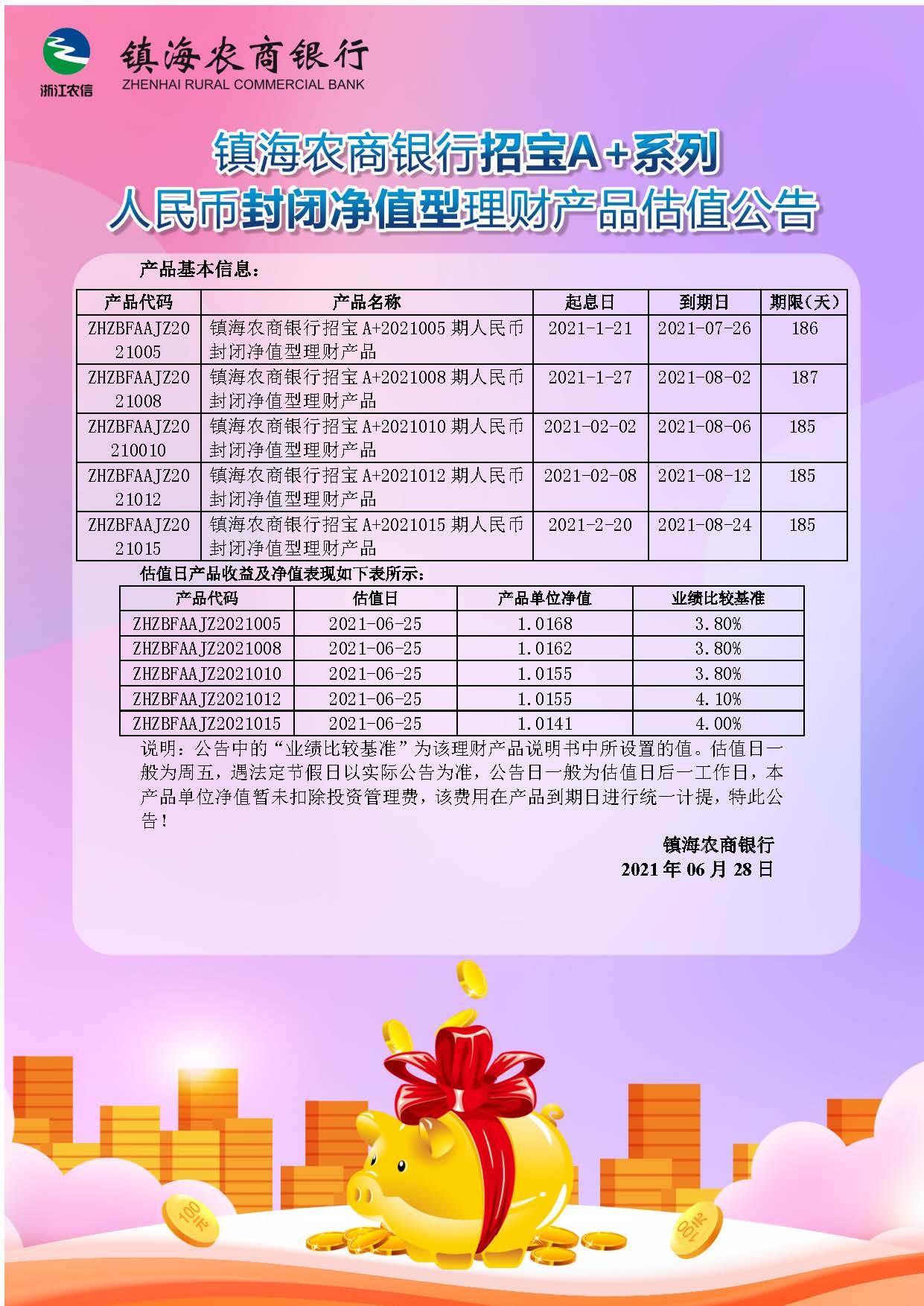 理财产品估值公告(20210628)