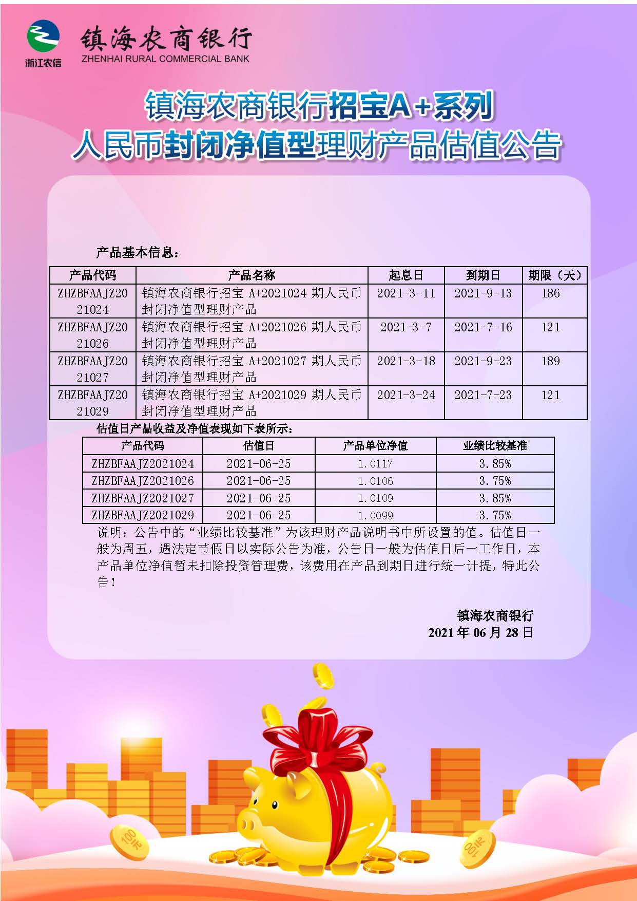 理财产品估值公告(20210629)