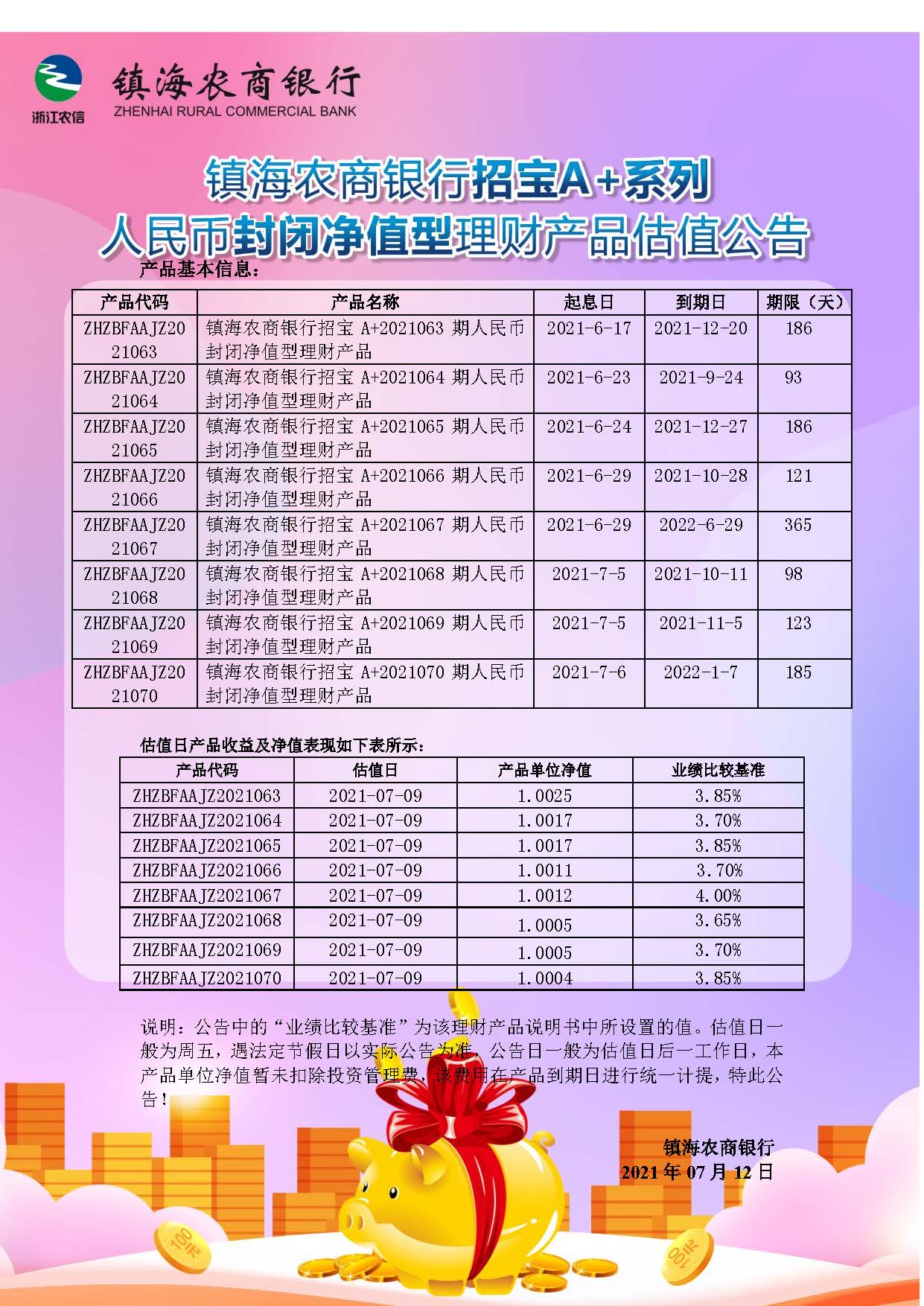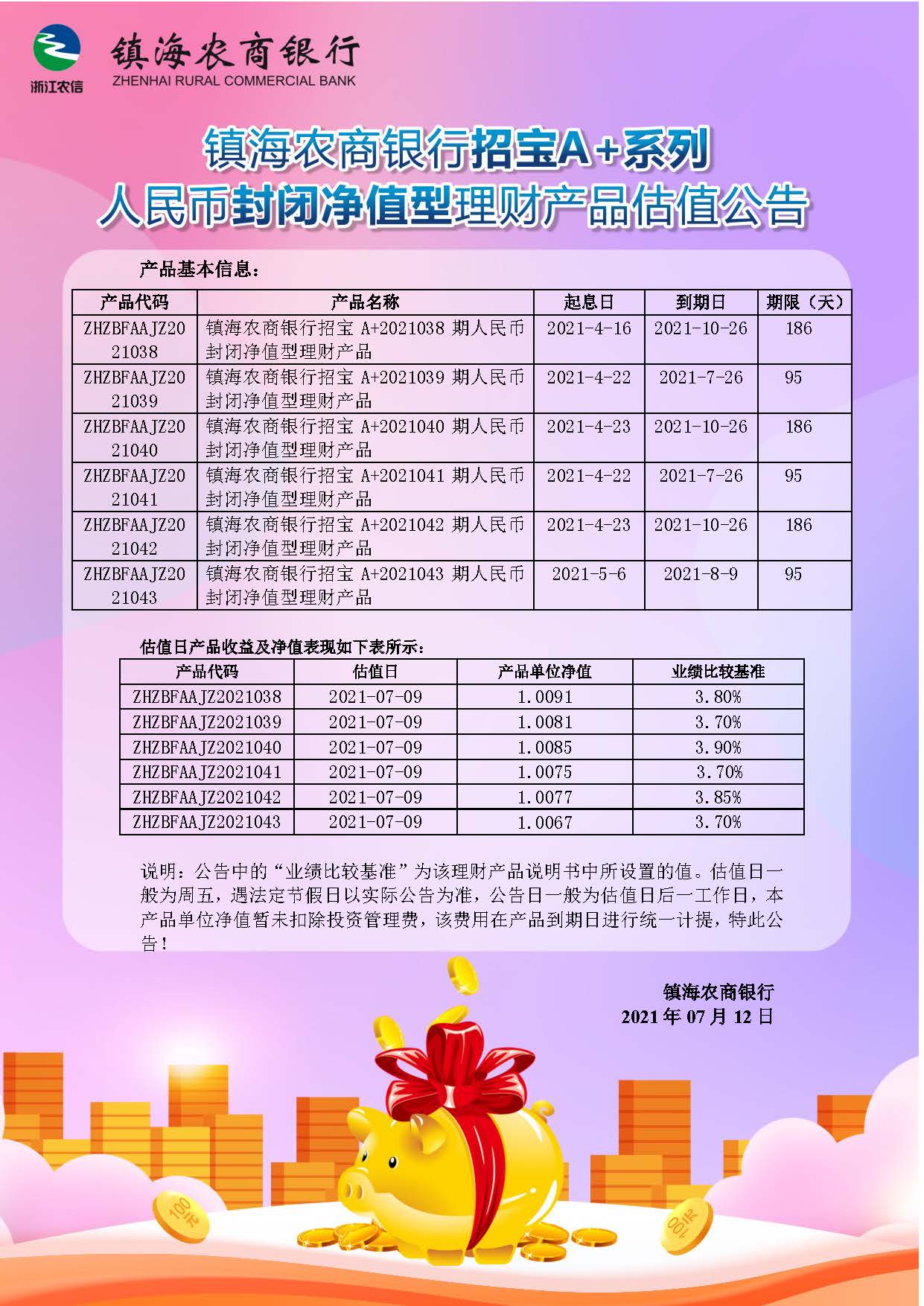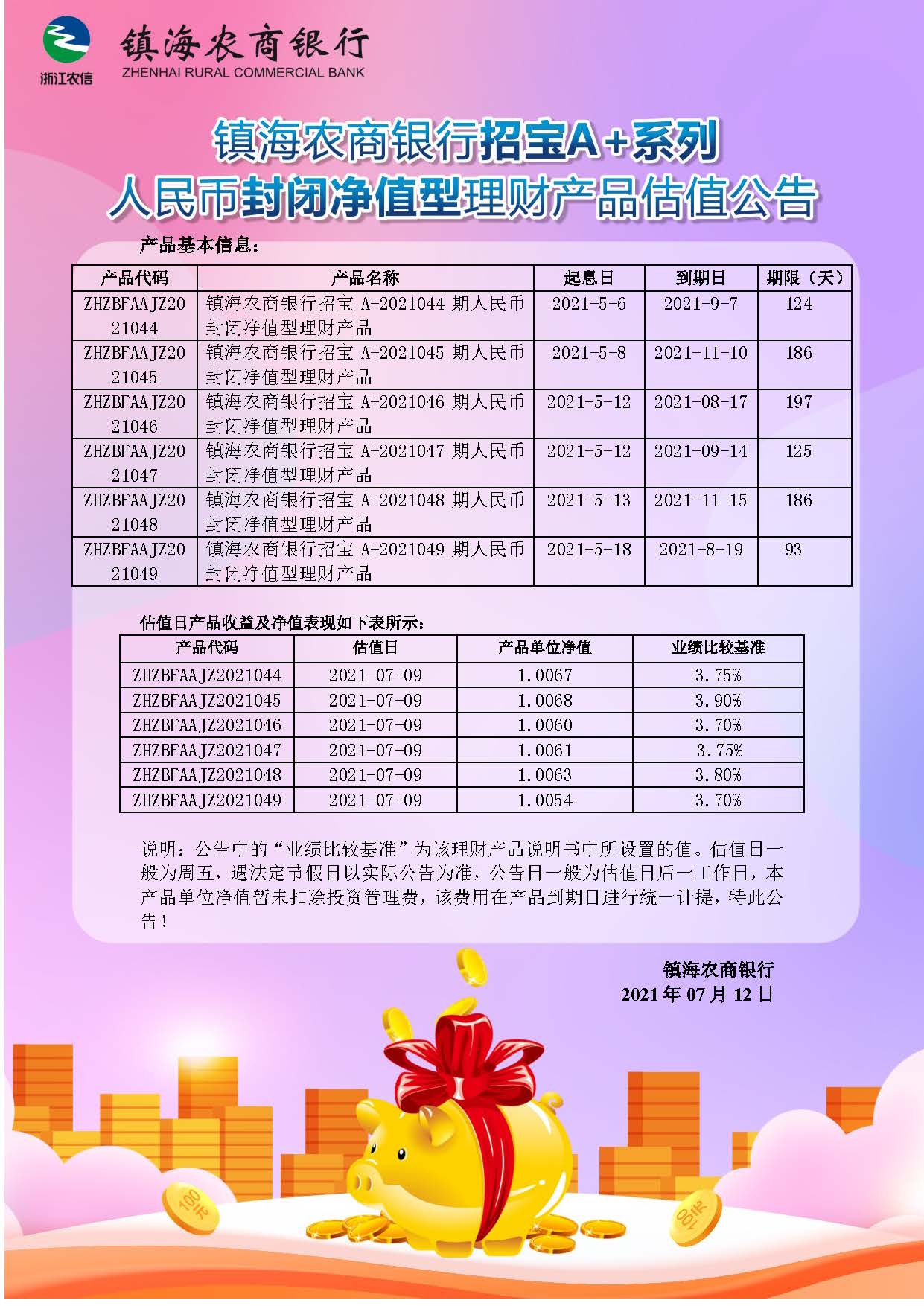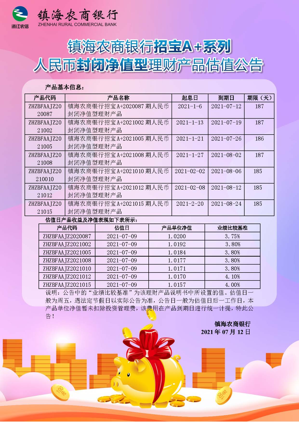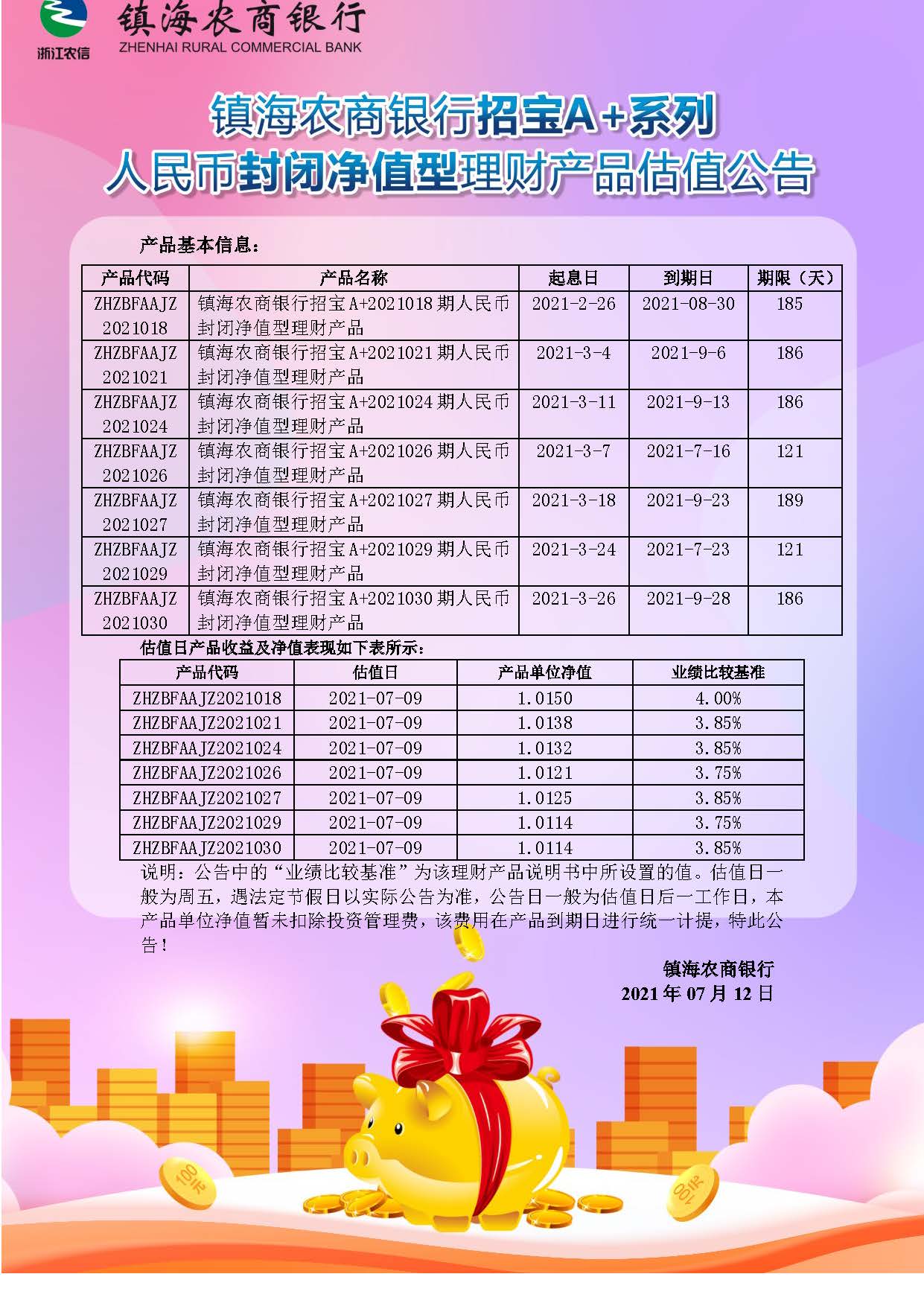 理财产品估值公告(20210712)