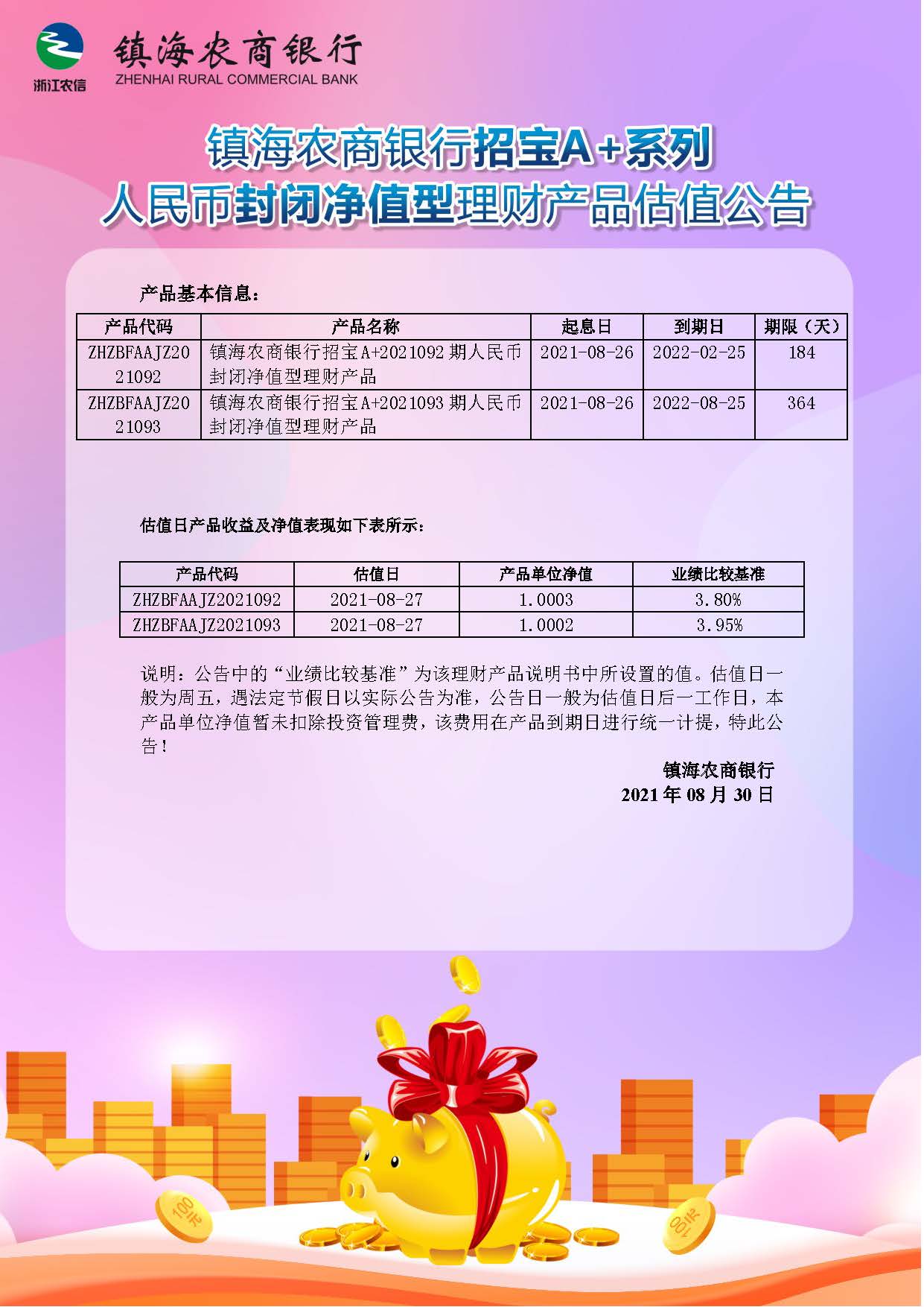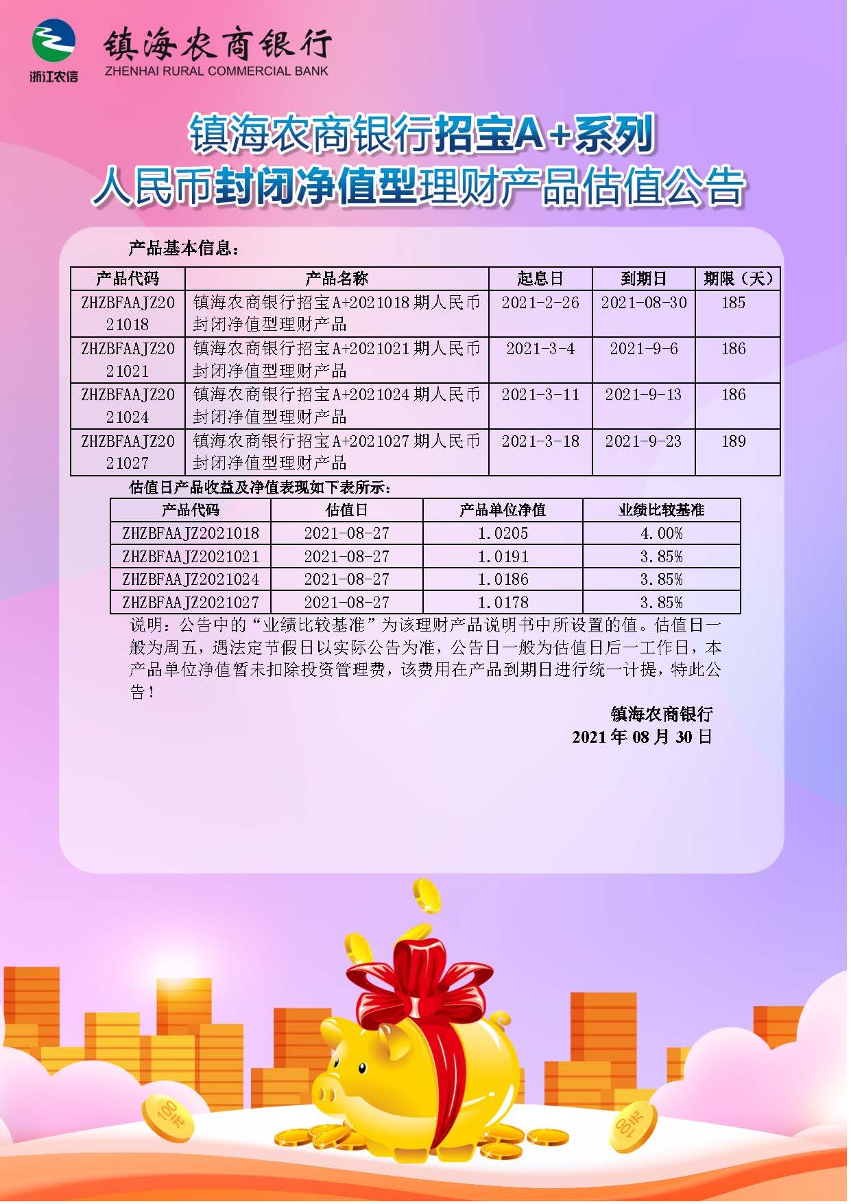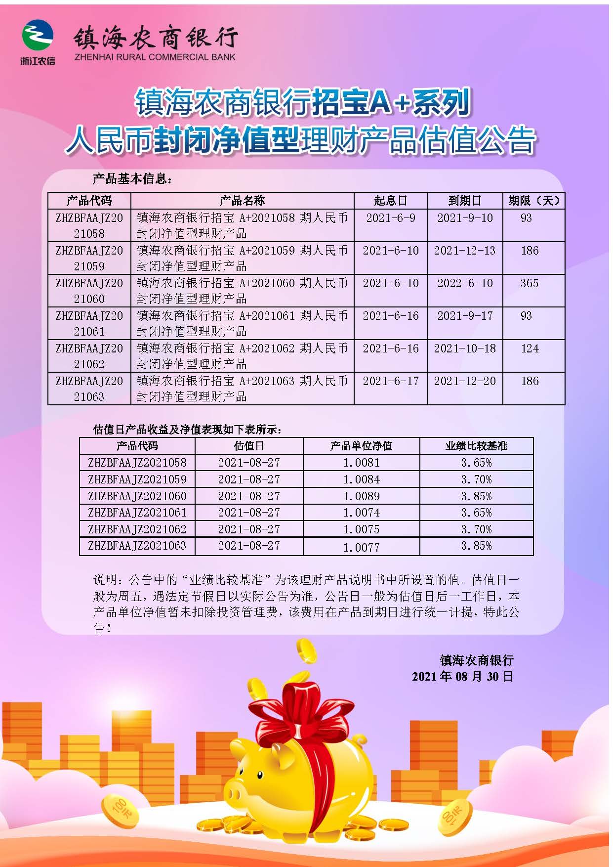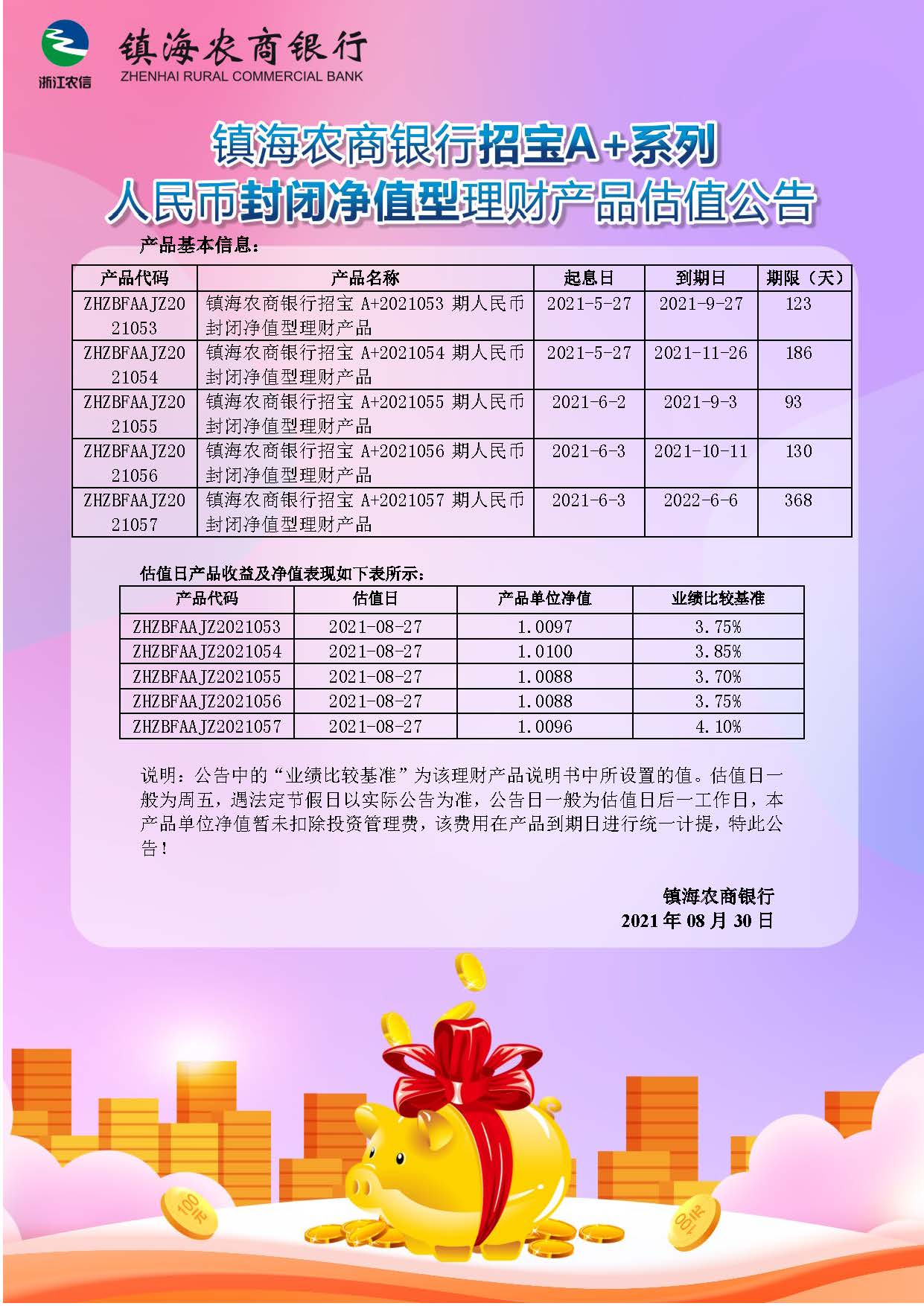 理财产品估值公告(20210830)