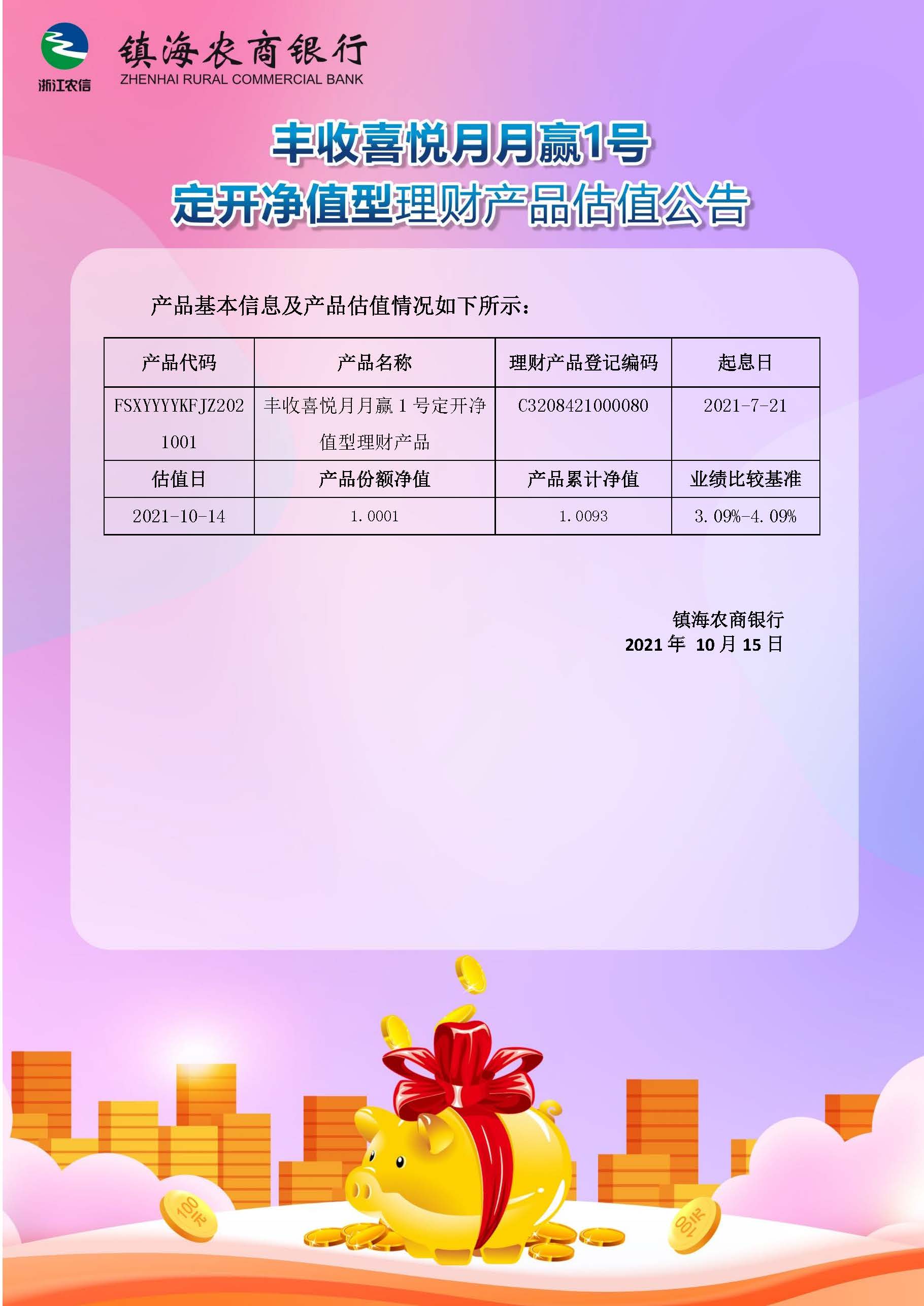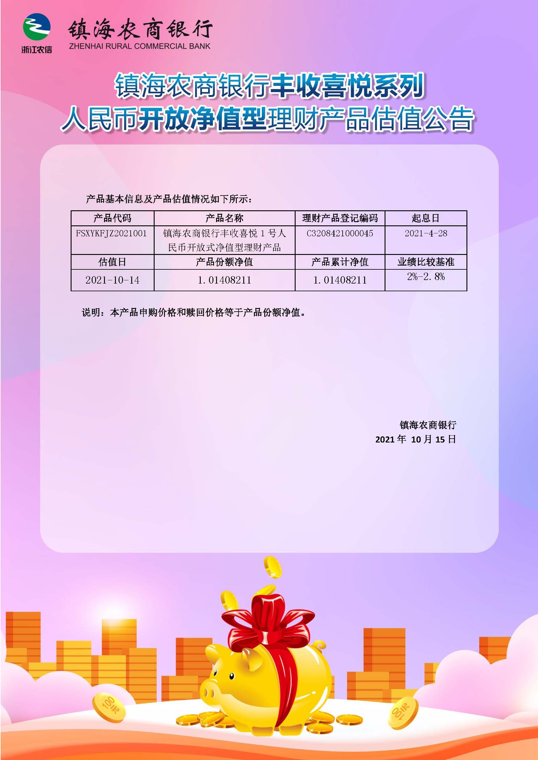 理财产品估值公告(20211014)