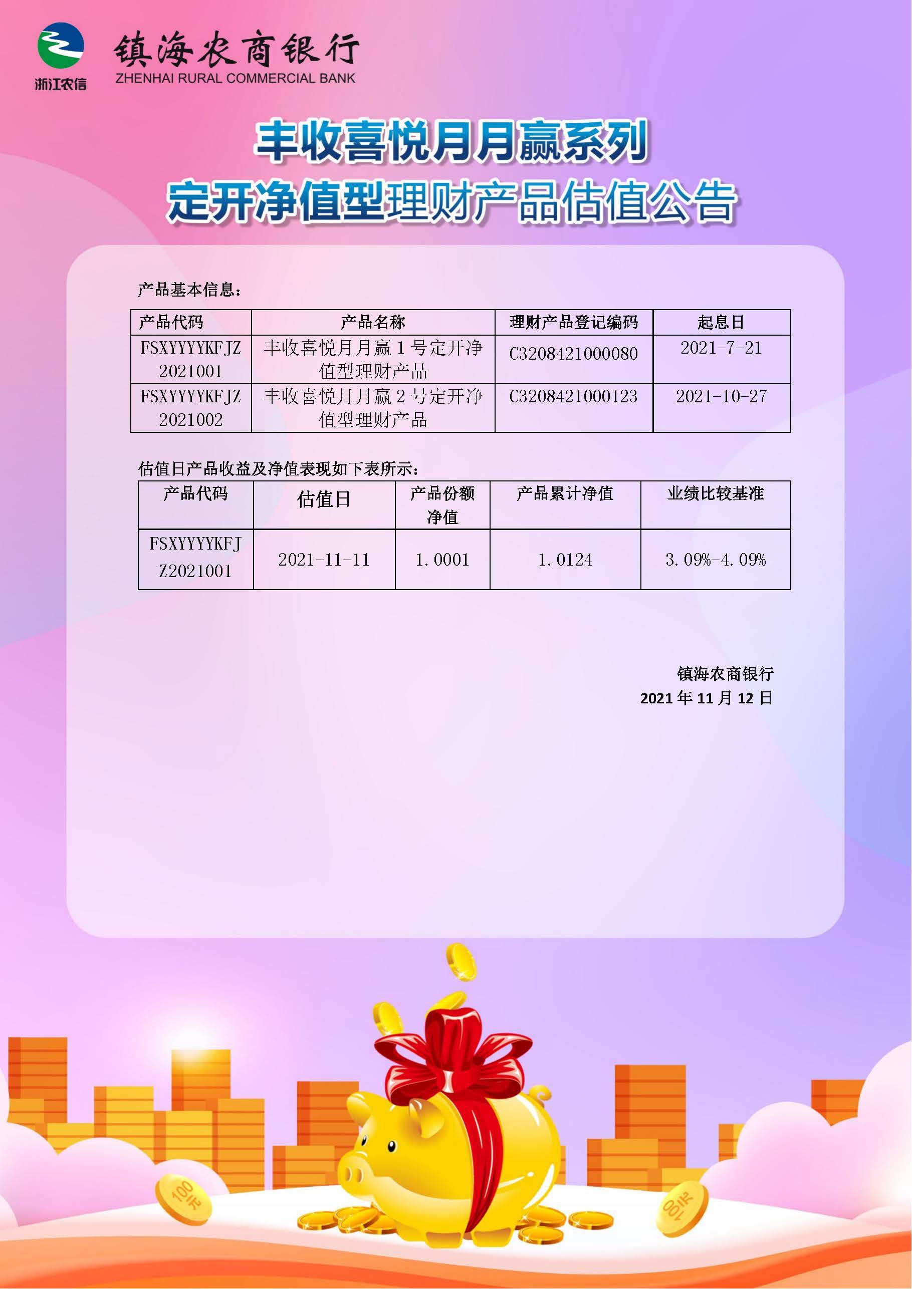 理财产品估值公告(20211112)