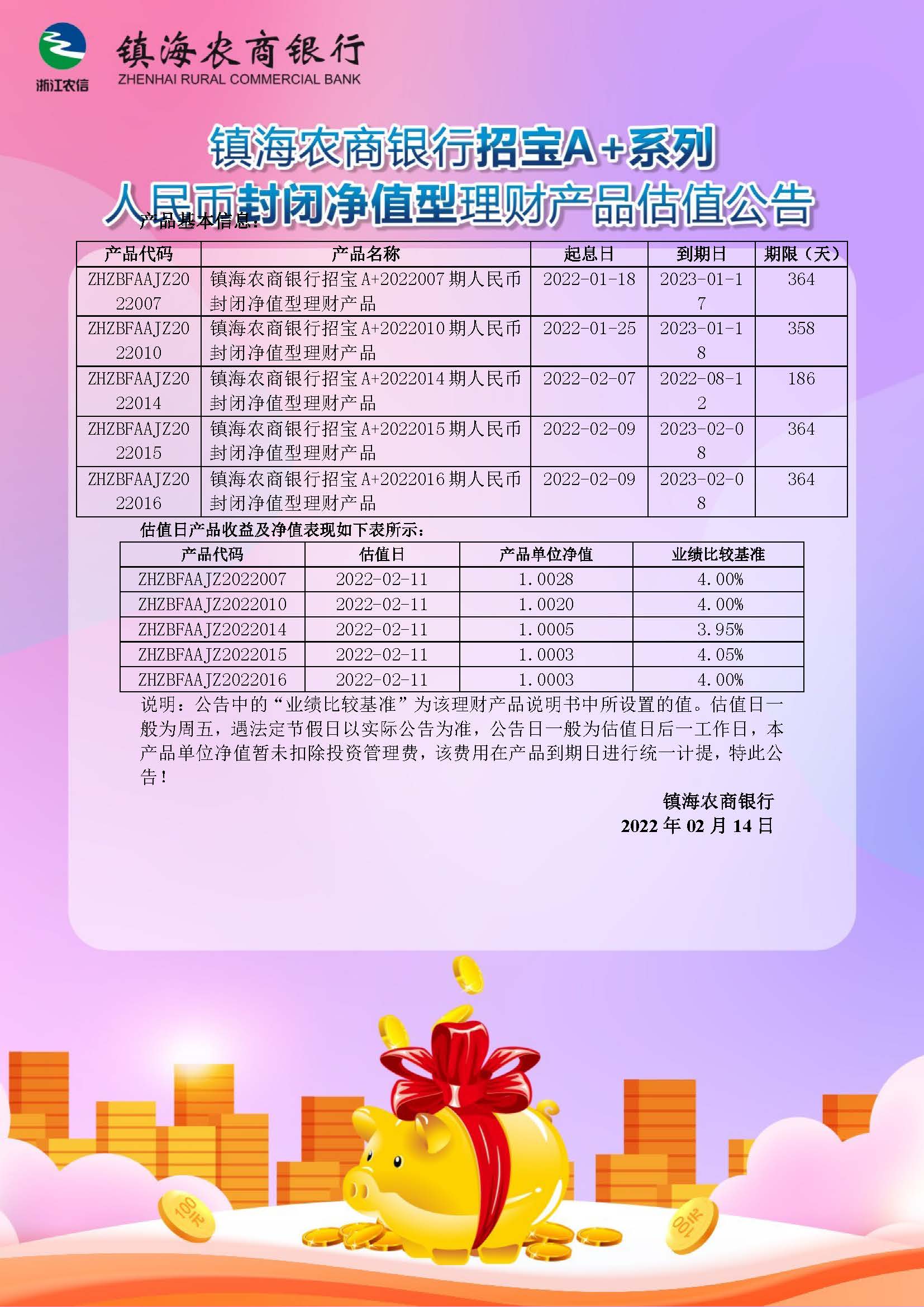 理财产品估值公告(20220214)