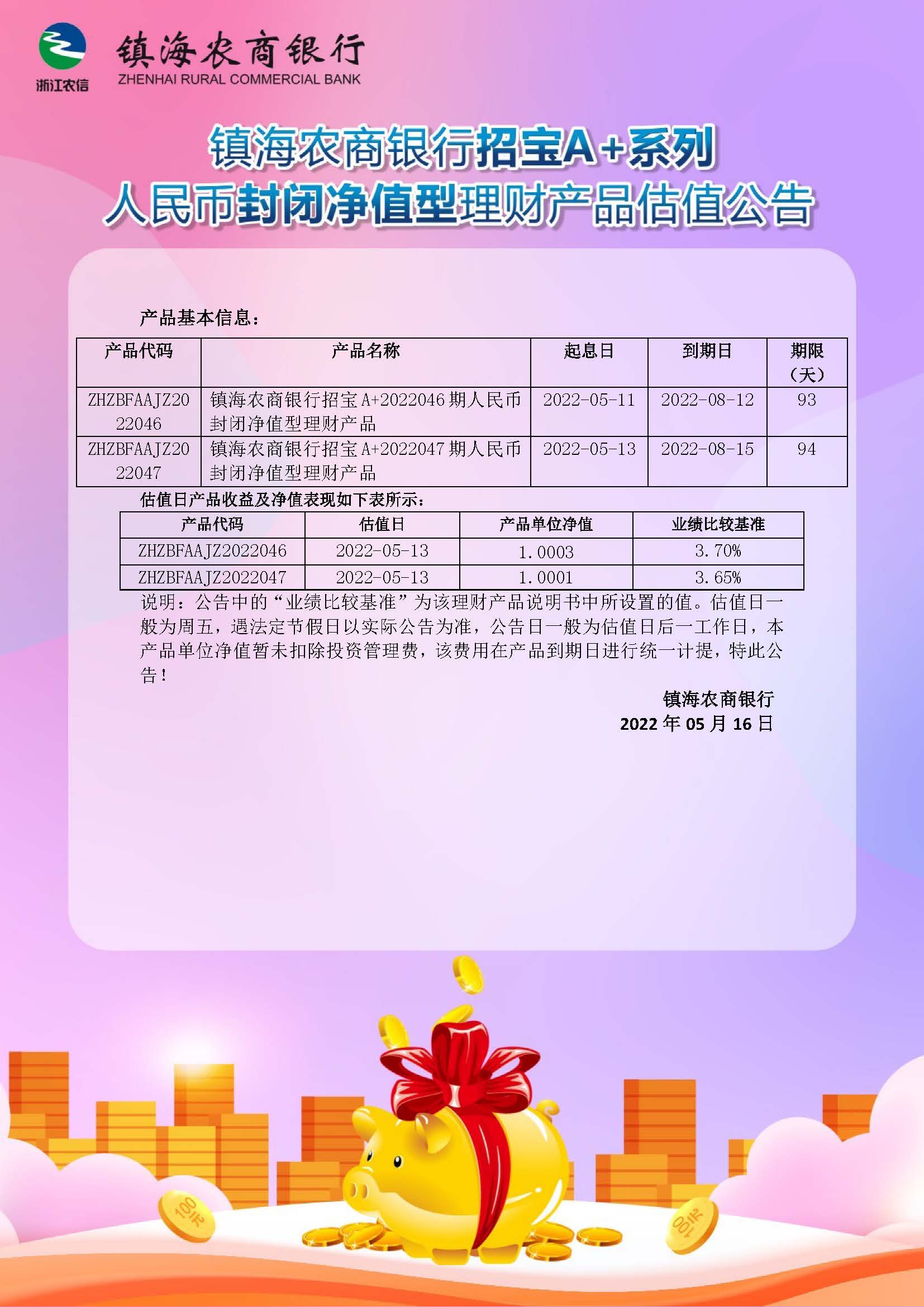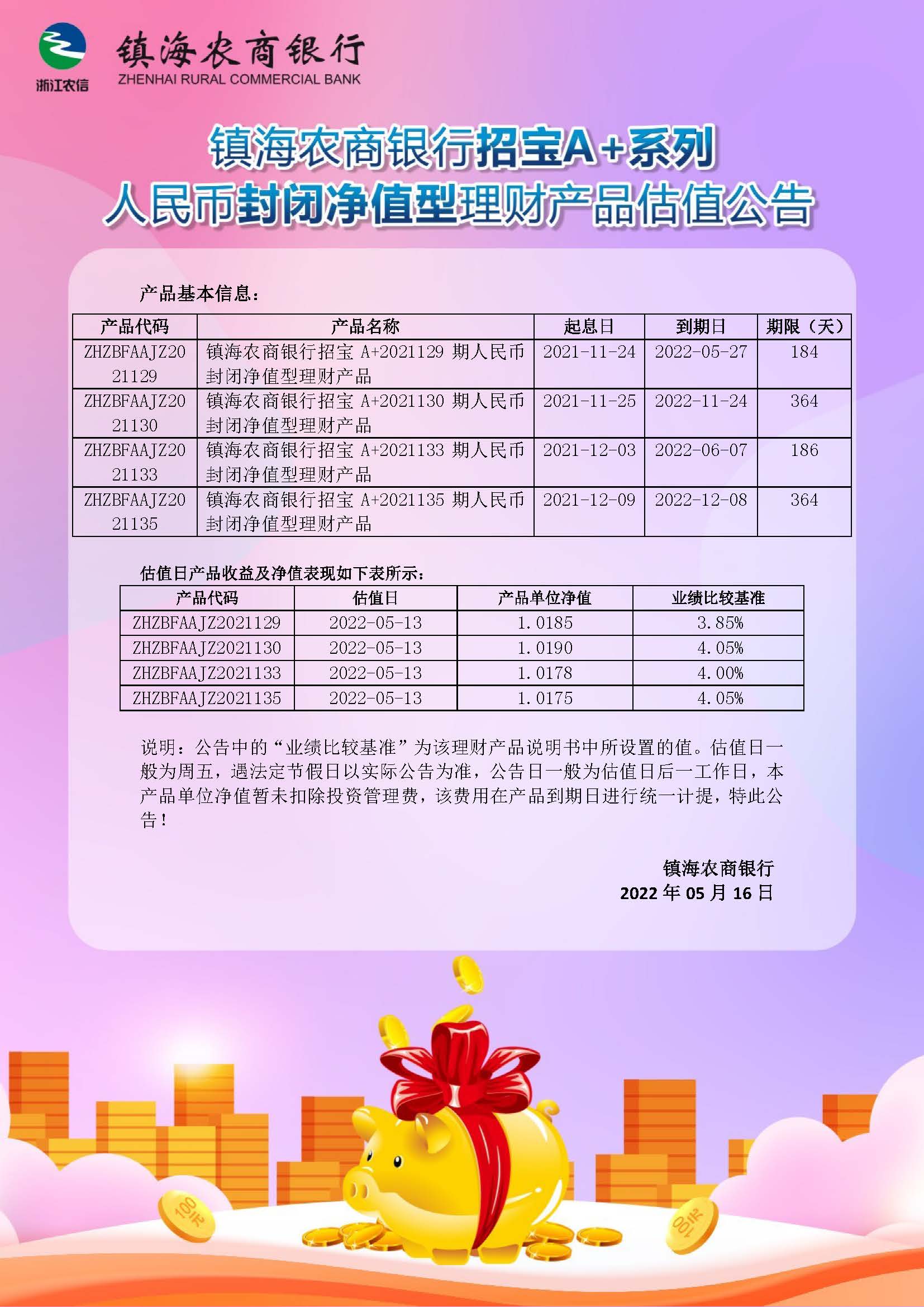 理财产品估值公告(20220516)