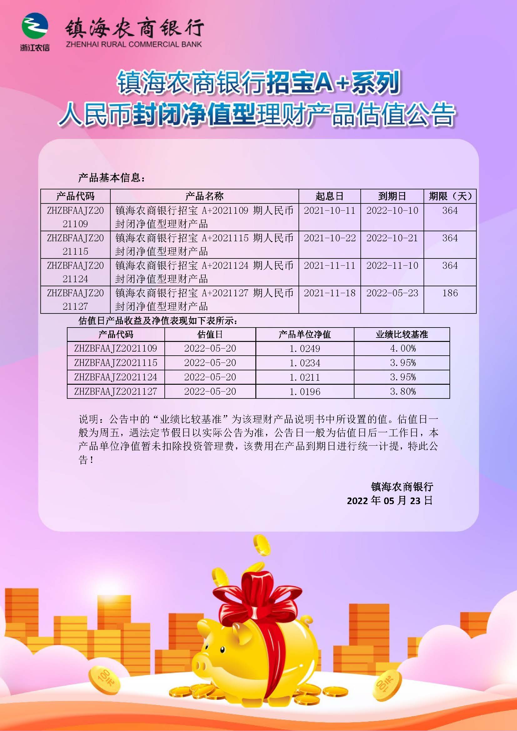 理财产品估值公告(20220523)