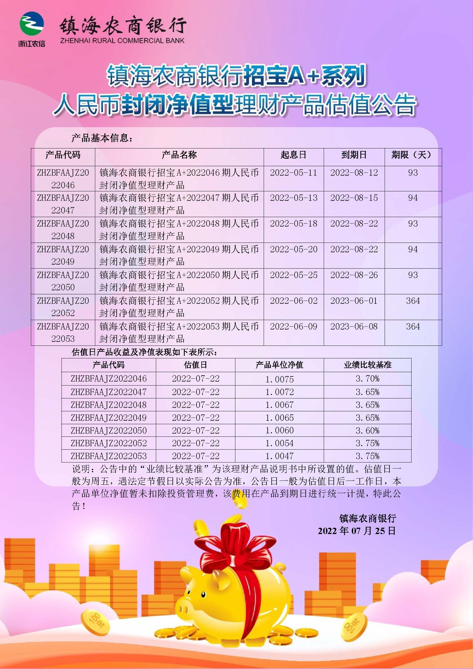 理财产品估值公告(20220725)