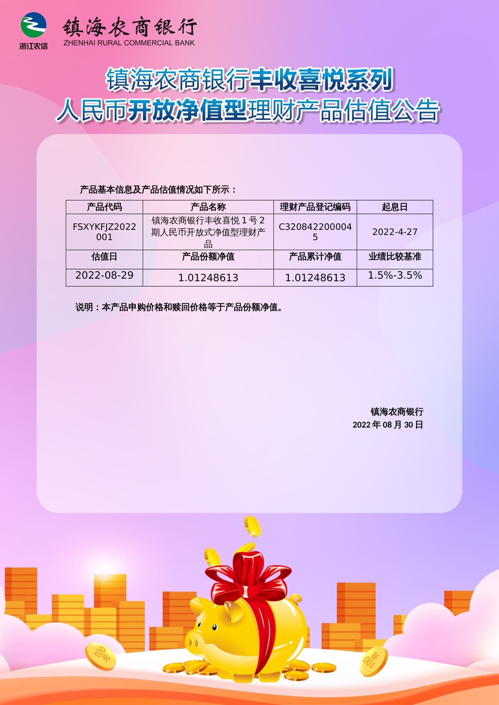 理财产品估值公告(20220830)