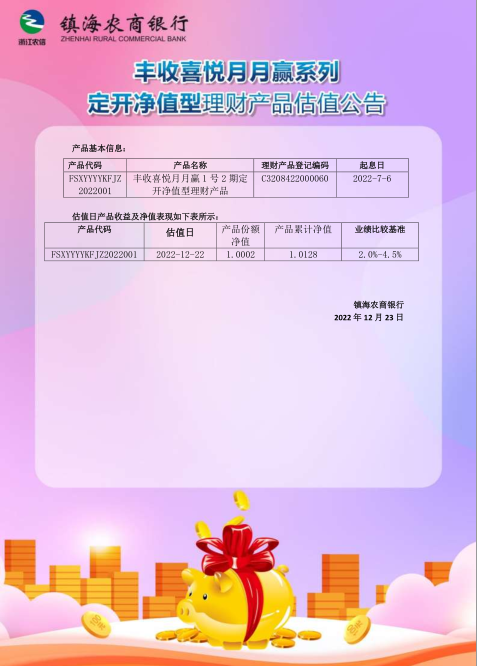理财产品估值公告(20221223)