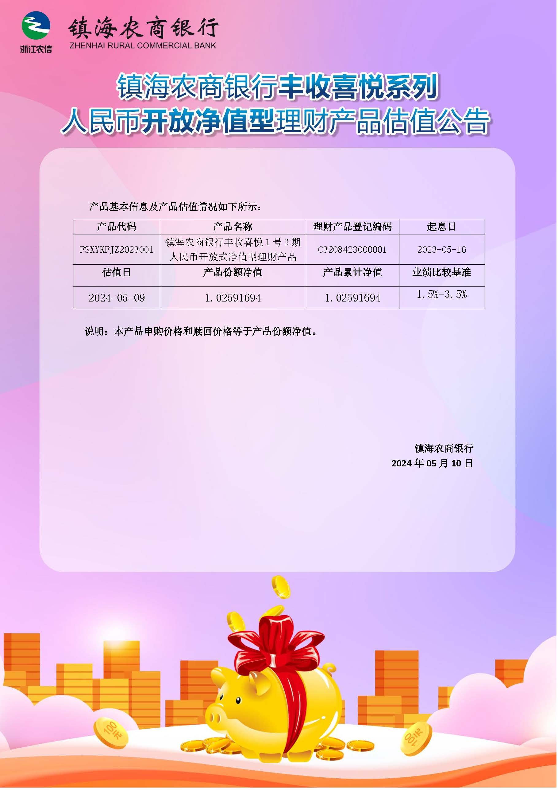 理财产品估值公告(20240510)