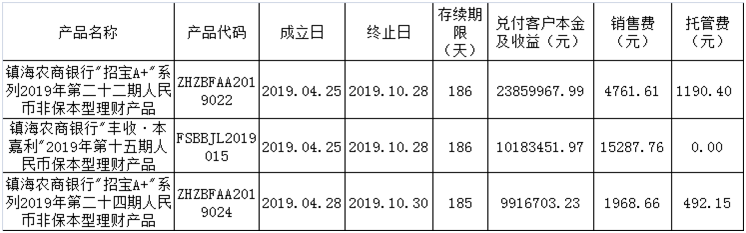理财产品到期公告(2019.10.28-2019.10.30)
