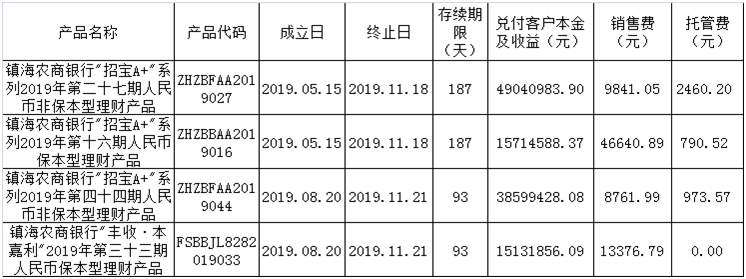 理财产品到期公告(2019.11.13)