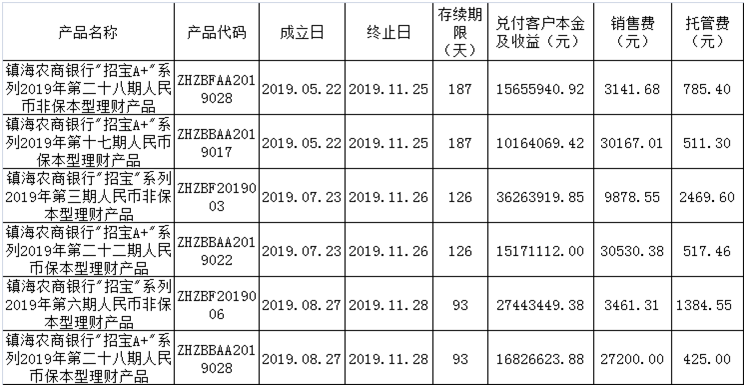理财产品到期公告(2019.11.25-2019.11.28)