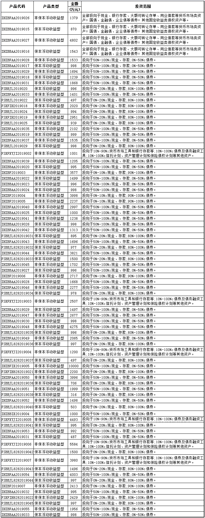 理财产品运作情况披露公告(截止2019年10月31日)