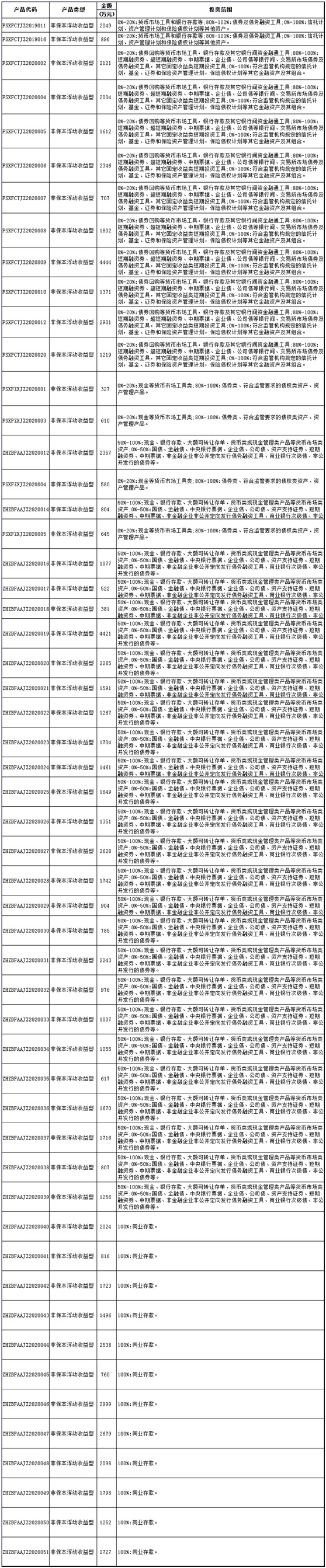 截止2020年09月30日,我行存续产品共计54期,资产配置情况如下: