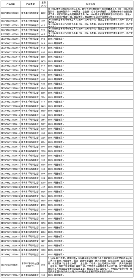截止2021年04月30日,我行存续产品共计56期,资产配置情况如下: