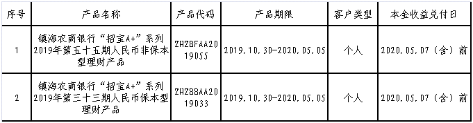 关于宁波镇海农村商业银行股份有限公司“五一劳动节”期间到期理财产品本金及收益兑付时间的公告 2020.04.26