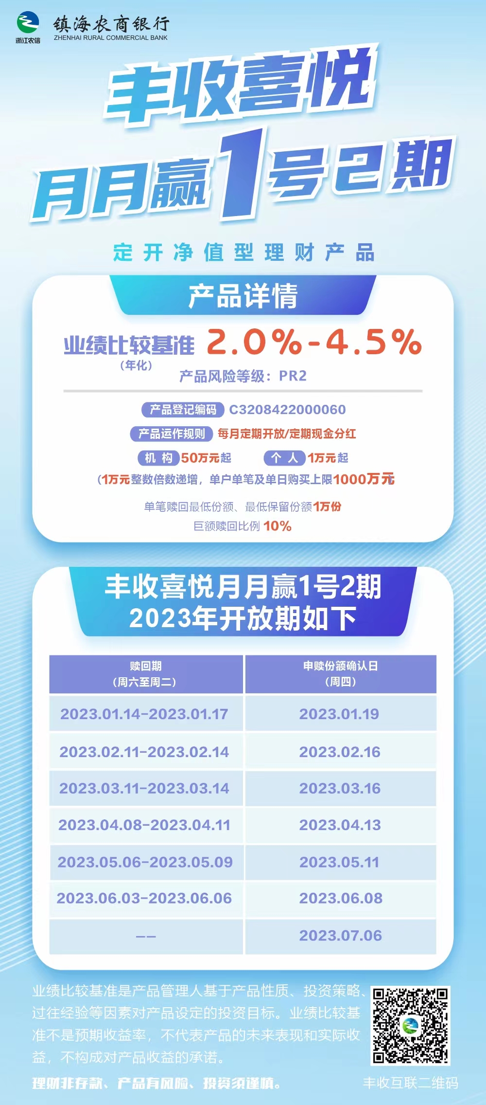 丰收喜悦月月赢1号2期定开净值型理财产品2023年开放期
